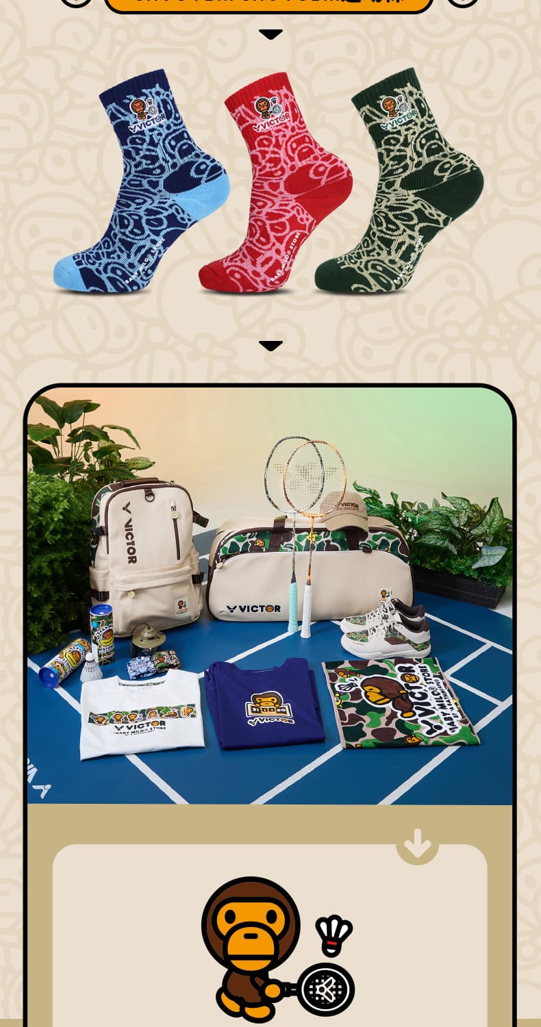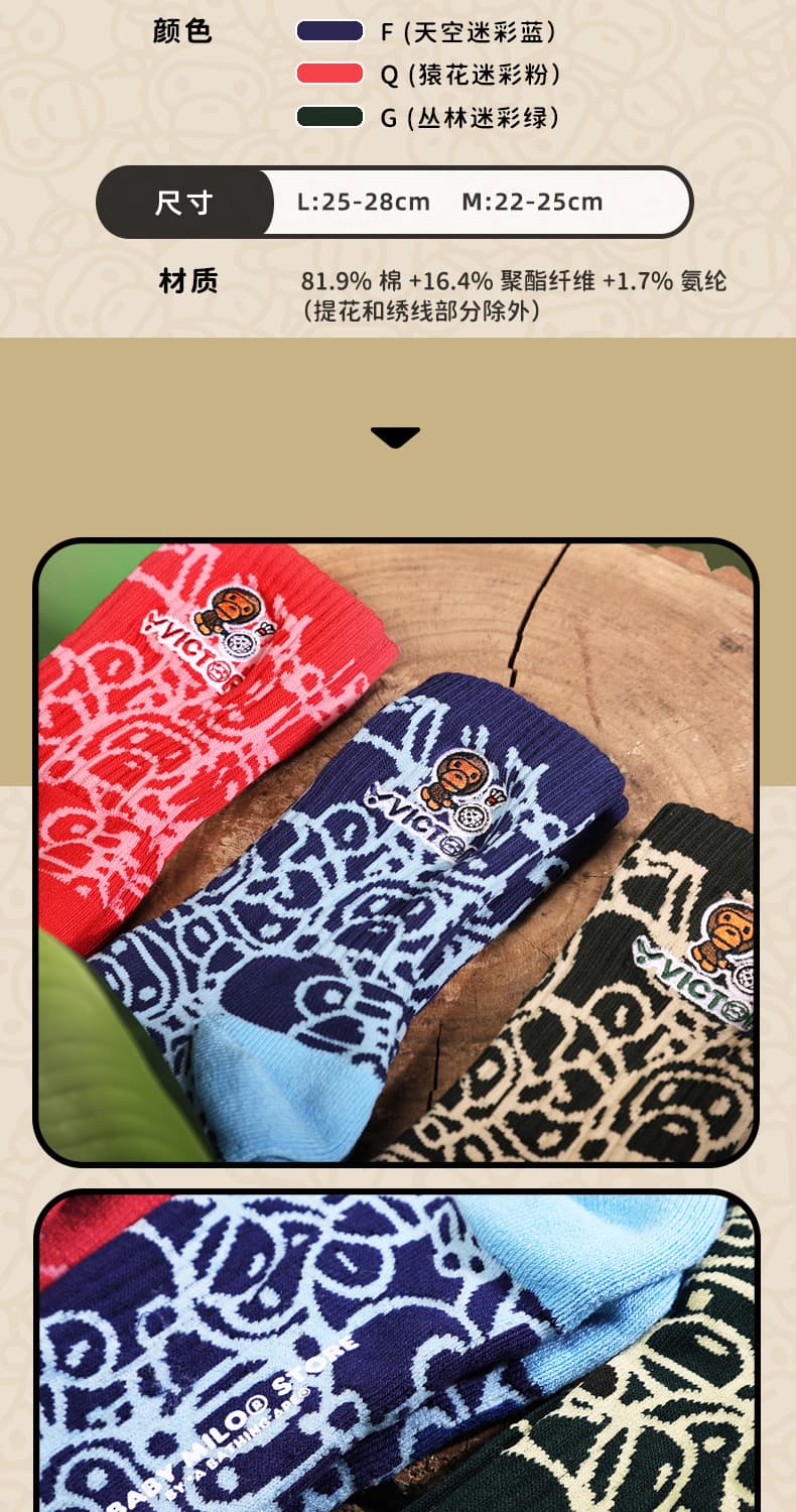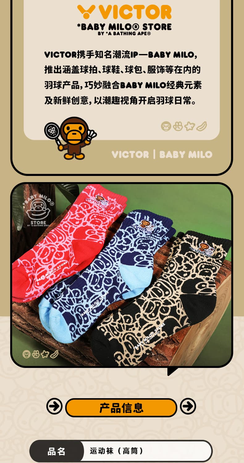 威克多VICTOR胜利 羽毛球袜 SK509BM 高筒运动袜 BABY MILO联名系列 吸汗透气棉袜 男款 L(25-28cm) 本品参加超级宠粉日满129减20 299减50 499减80 999减120元大促!