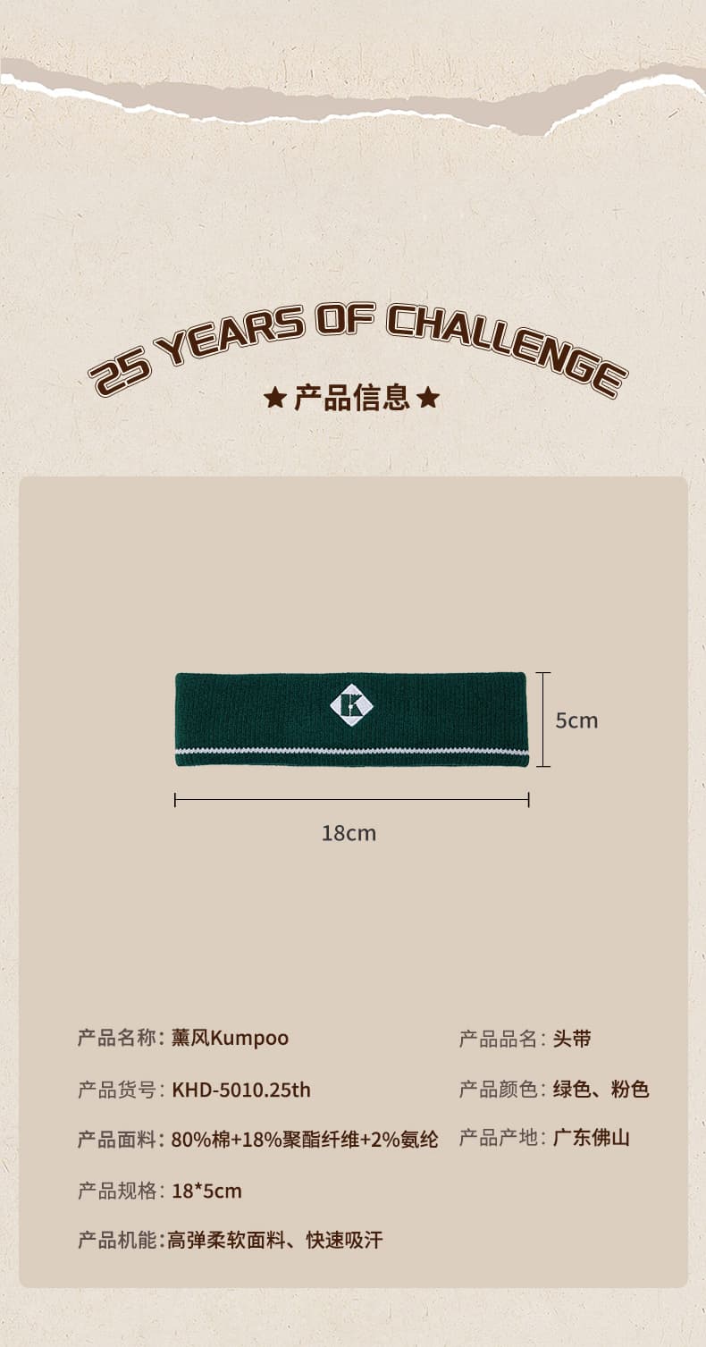KUMPOO 薰风 羽毛球头带 25周年系列 运动发带 双面毛圈高弹力 熏风束发带 KHD-5010.25th 18x5cm 柔软舒适,干爽透气,不闷热,久戴不勒