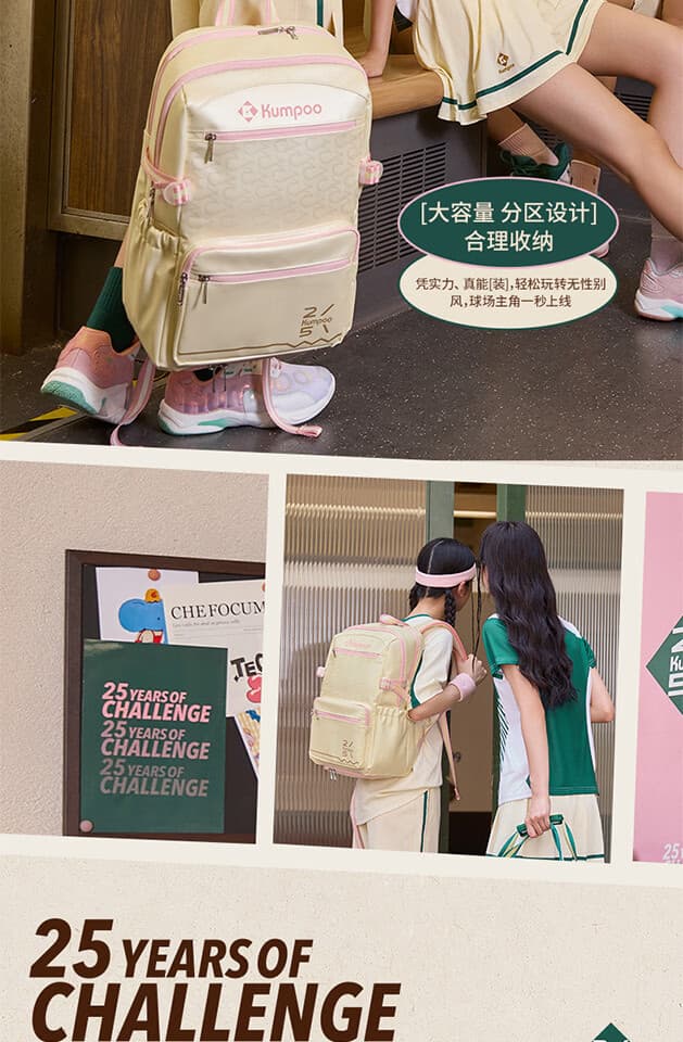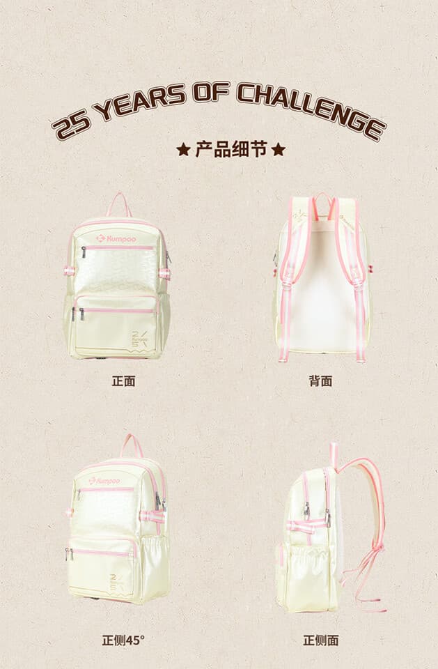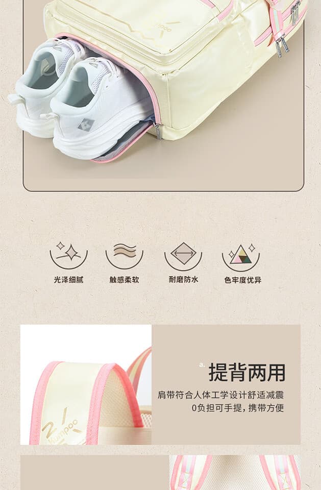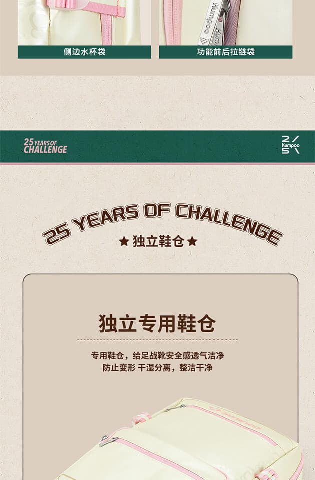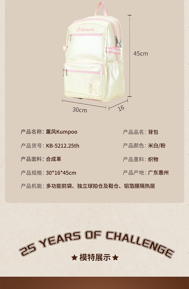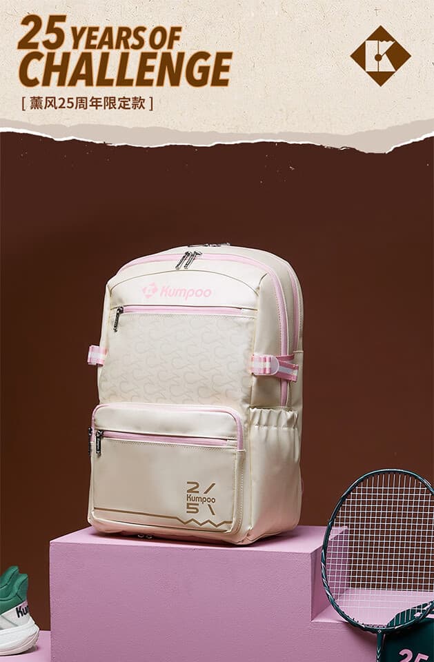 KUMPOO 薰风 羽毛球包 运动背包 25周年系列 熏风大容量双肩包 KB-5212.25th 珍珠白/粉 多功能前袋,独立鞋仓拍仓,铝箔膜隔热层