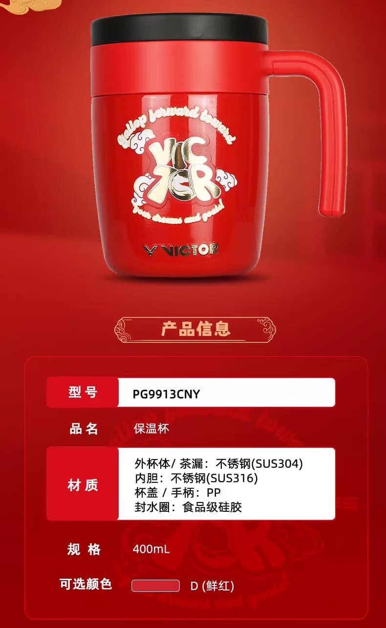 VICTOR 威克多 胜利 保温杯 马到成功系列 运动水杯 马年专属新年礼物 PG9913CNY 红色 400mL 马到成功系列保温杯,带茶漏