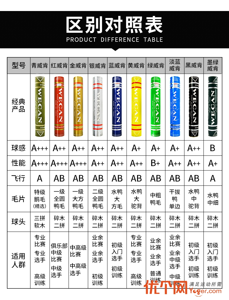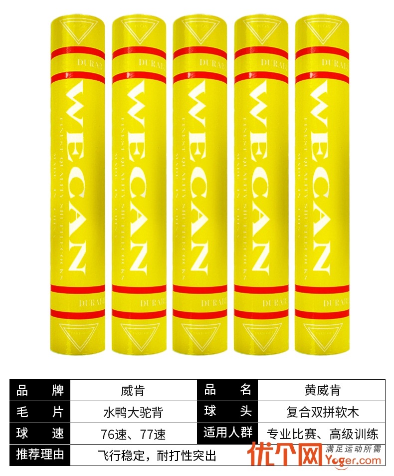 威肯羽毛球 黄威肯 水鸭大驼背羽毛球 耐打型羽毛球