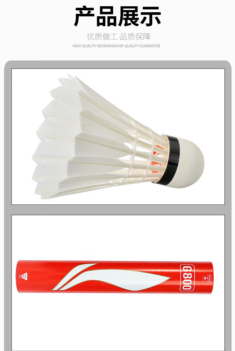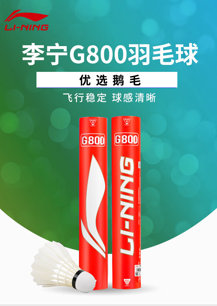 LI-NING 李宁 羽毛球 G800 鹅毛球 G系列 耐打训练羽毛球 羽联比赛专用球 12只/筒 全天然软木球头 飞行稳定 耐打耐用