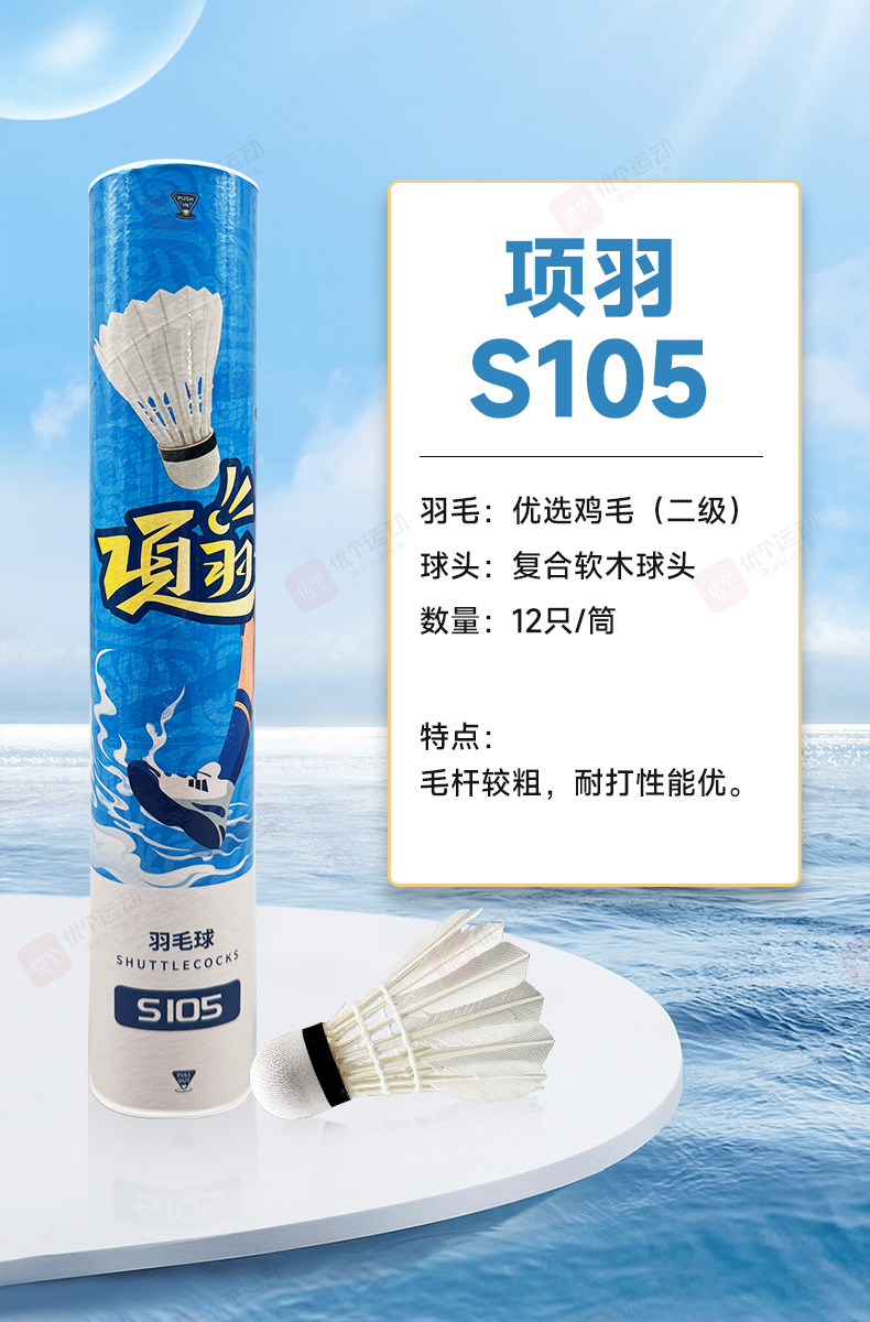 项羽鸡毛球 采用 精选优质羽毛+复合软木球头