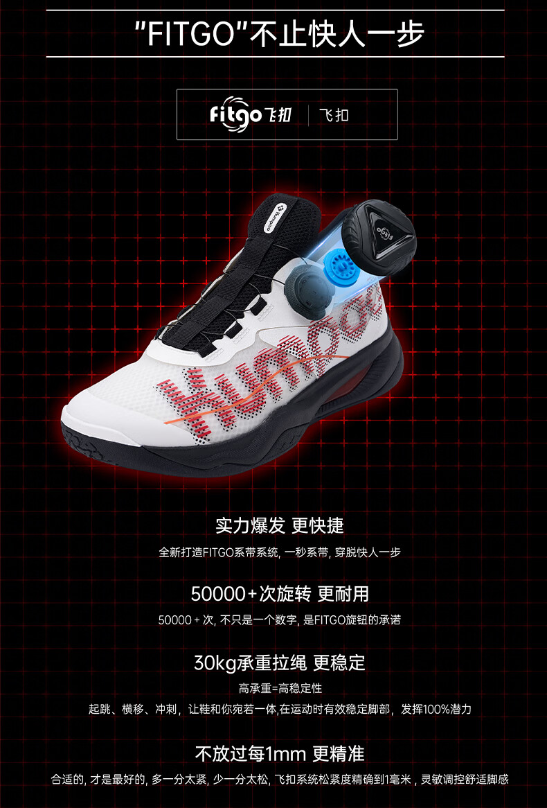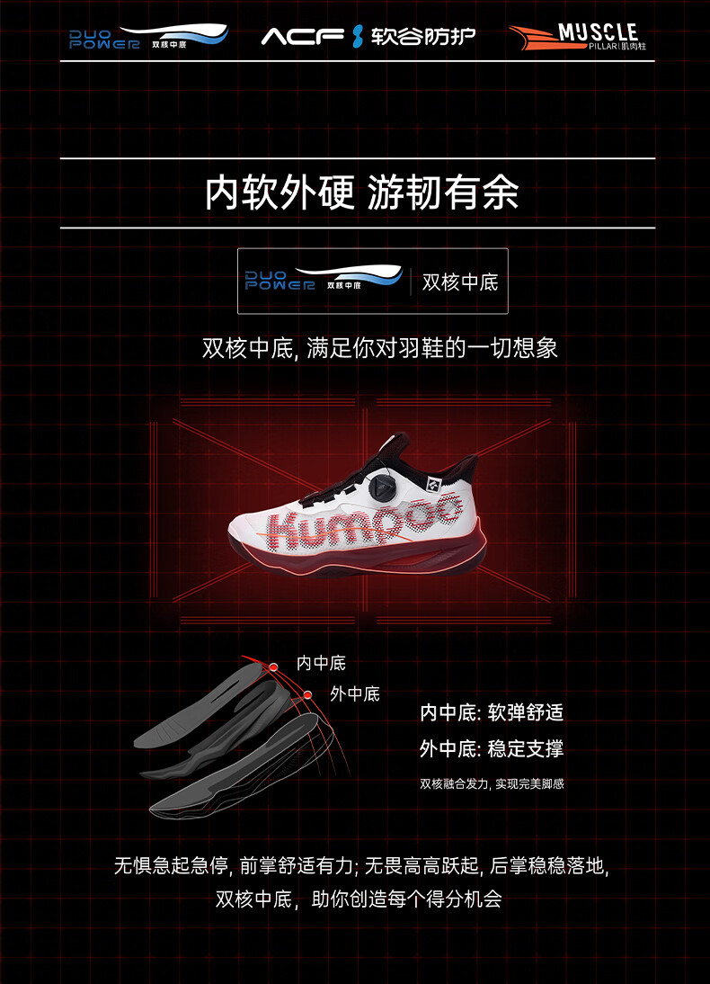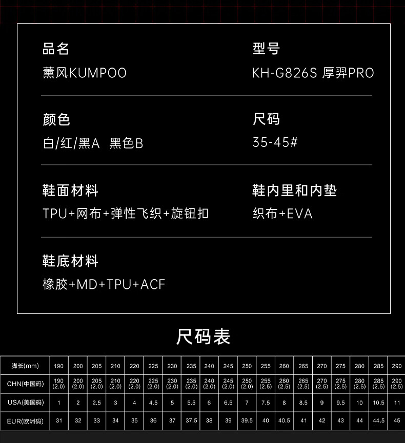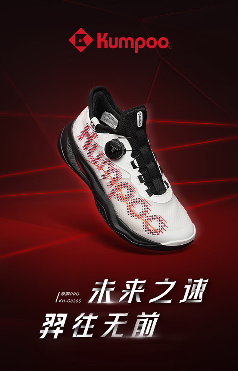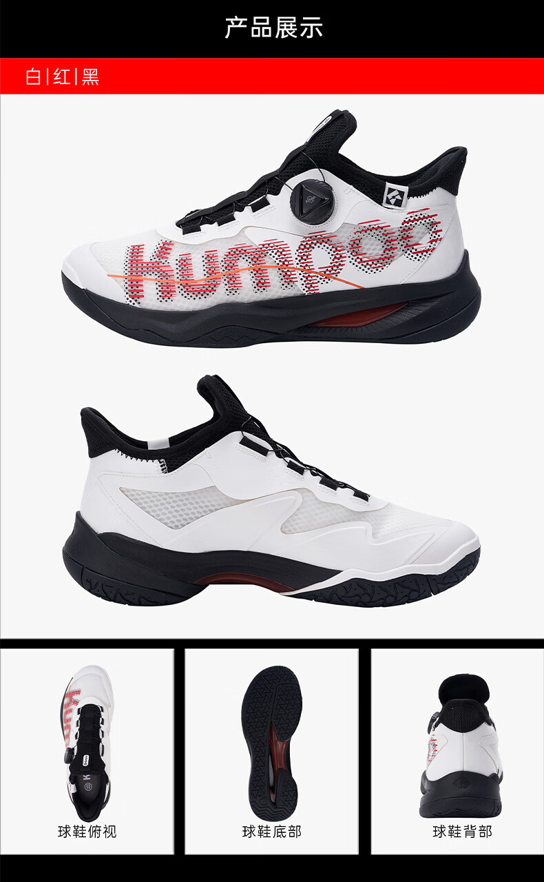 KUMPOO 薰风 羽毛球鞋 厚羿 纽扣鞋带 透气减震 男女款运动鞋熏风KH-G826S 白红黑 纽扣鞋带,双密度中底,软弹舒适,稳定支撑