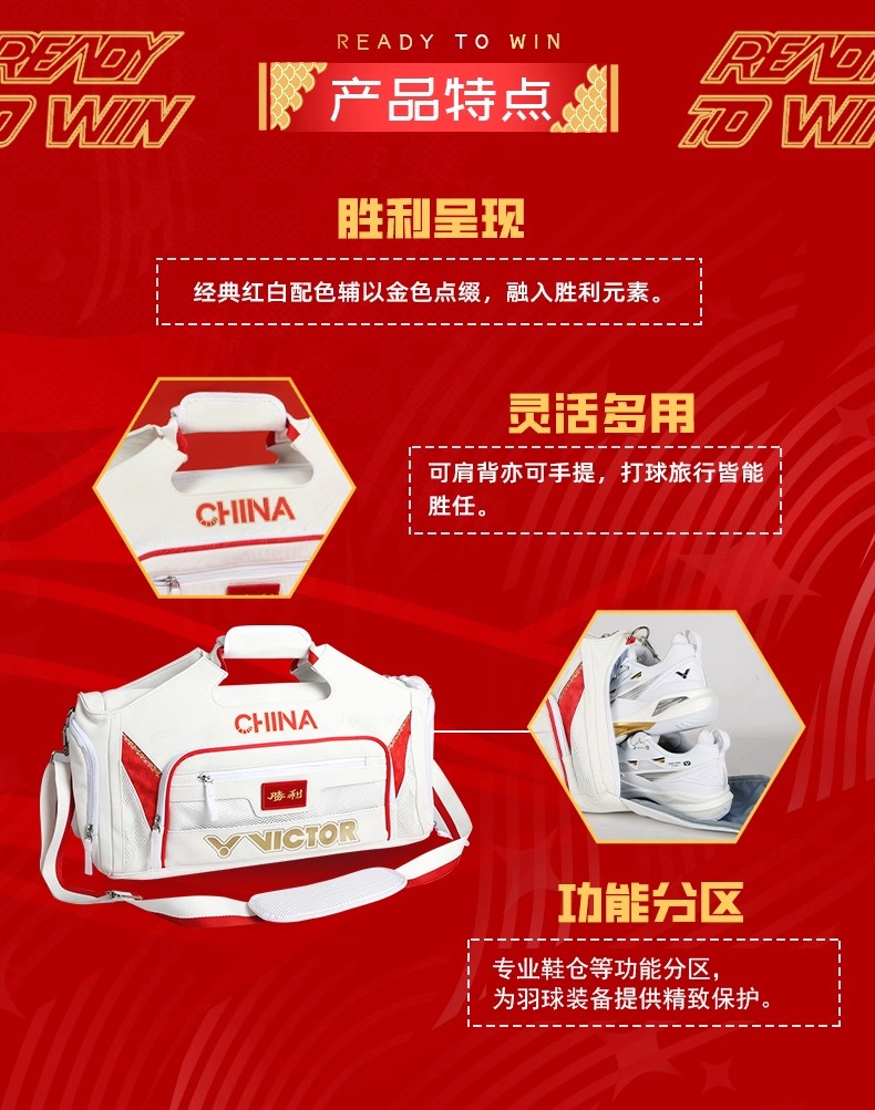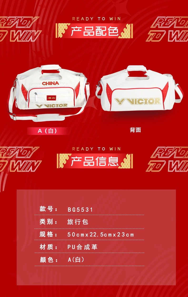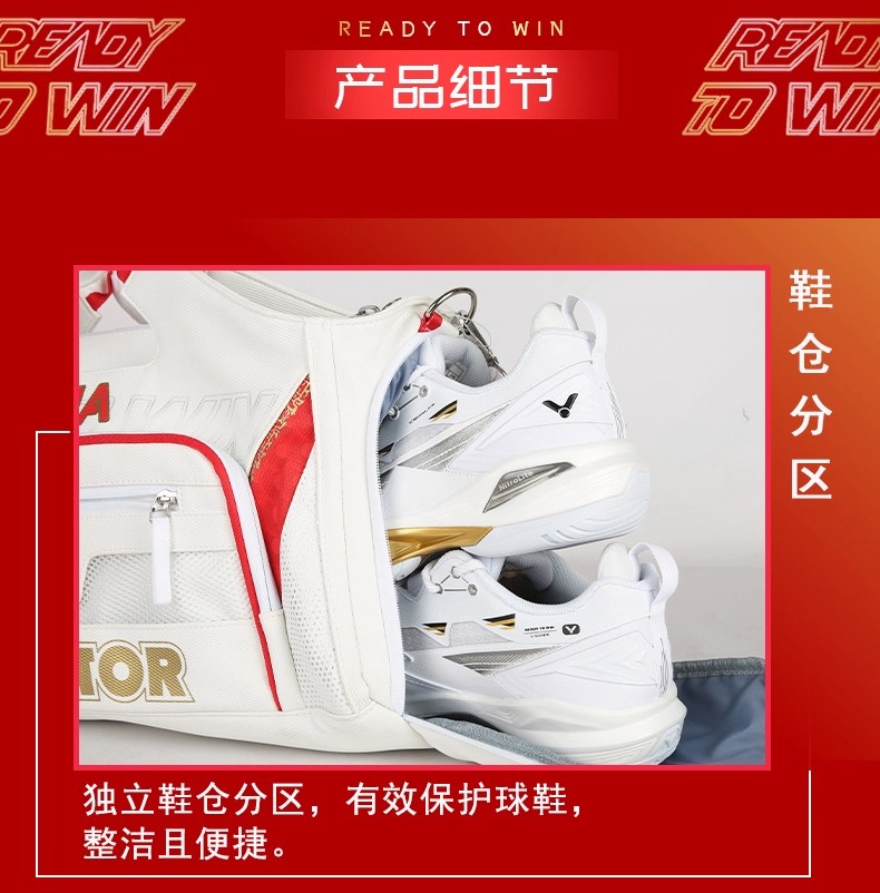 VICTOR 威克多 羽毛球包 矩形包 独立鞋仓多功能 大容量运动训练单肩包拍包旅行包 BG5531 A 漂白 功能分区 灵活多用
