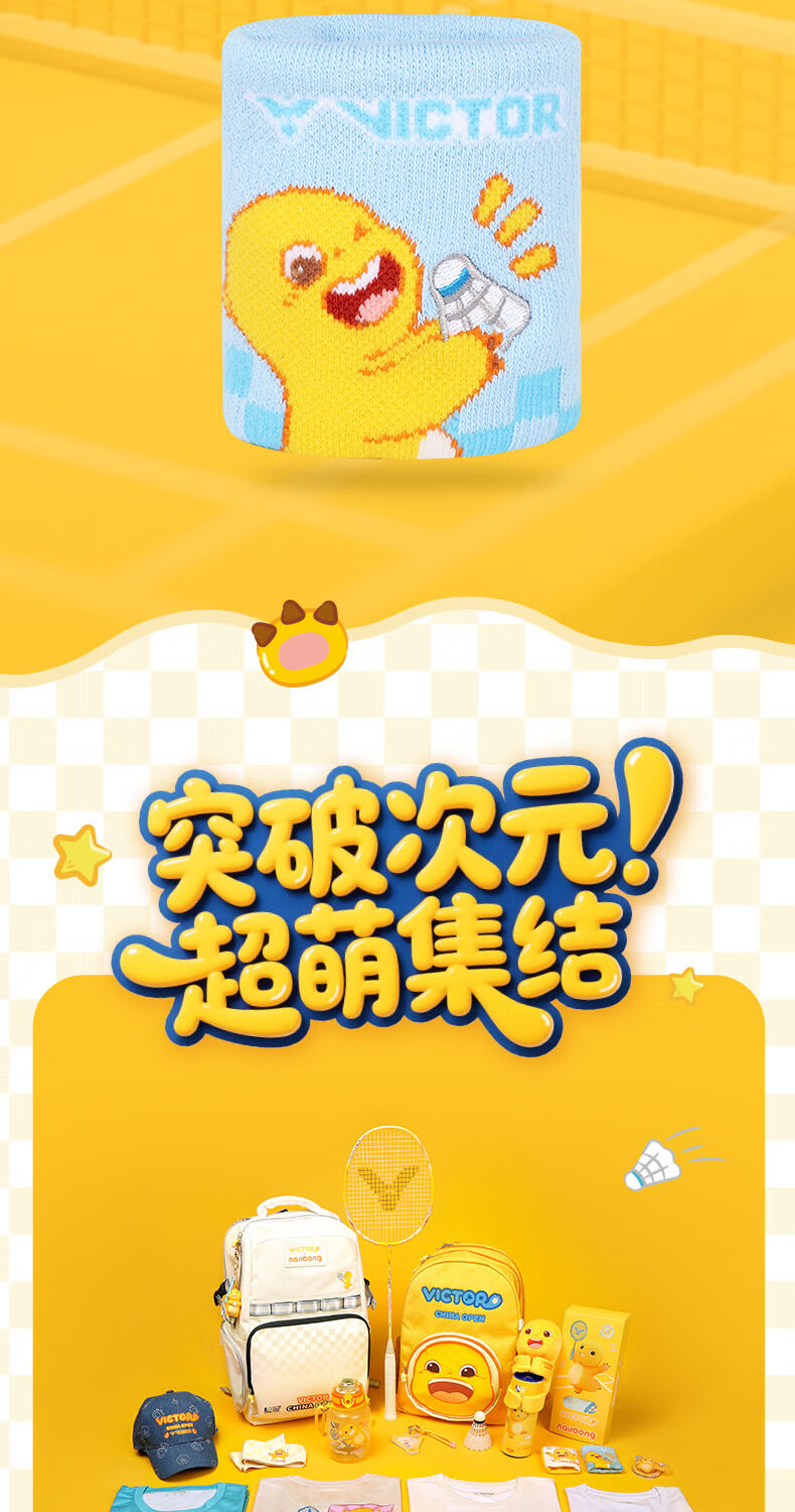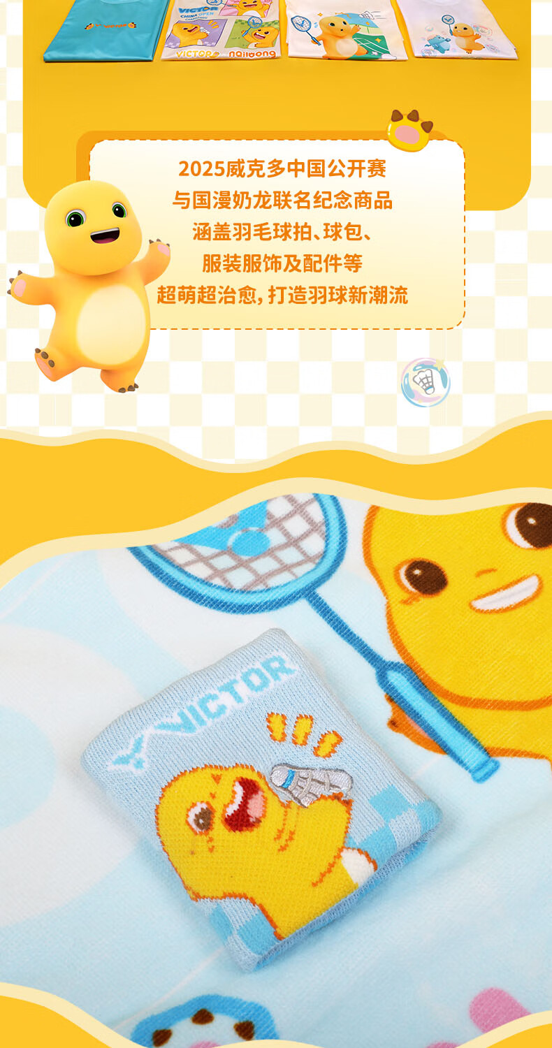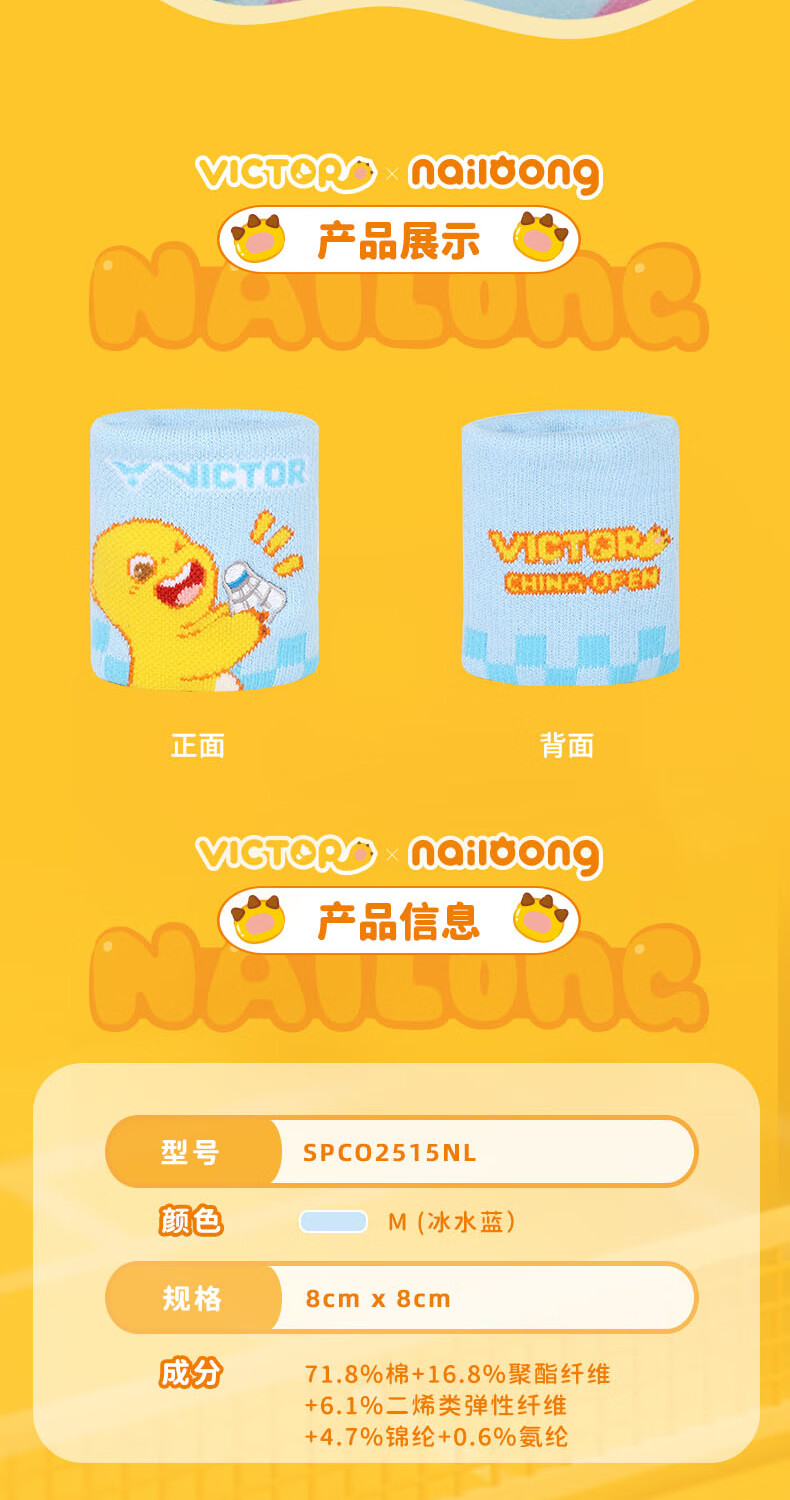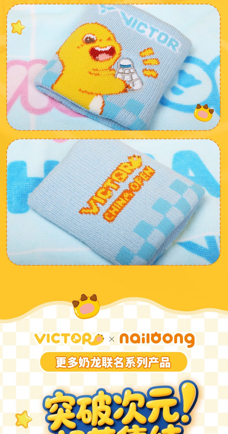VICTOR 威克多 运动护腕 公开赛奶龙联名系列 胜利羽毛球护腕 SPCO2515NL 单只装 冰水蓝 趣味奶龙元素 吸汗防护不勒手