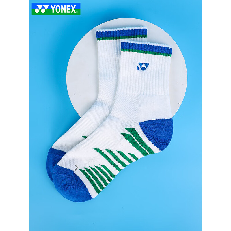 YONEX 尤尼克斯男款中筒羽毛球袜 451625BCR 白/海蓝