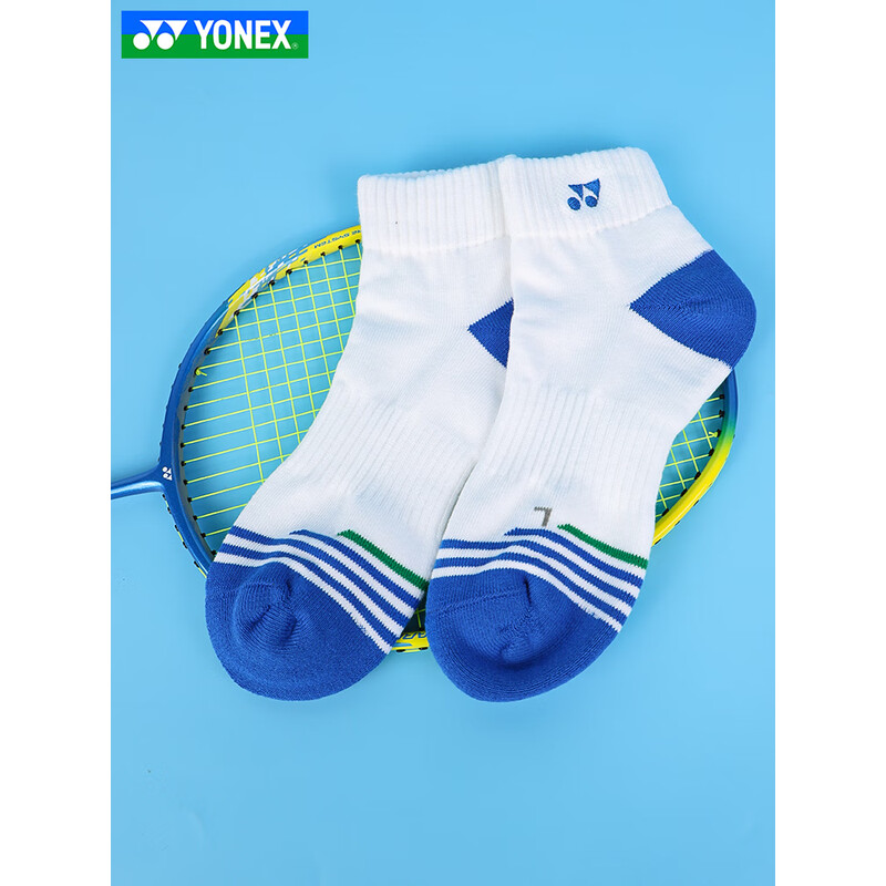 YONEX 尤尼克斯羽毛球袜 女款 短筒 2451525BCR_白/海蓝