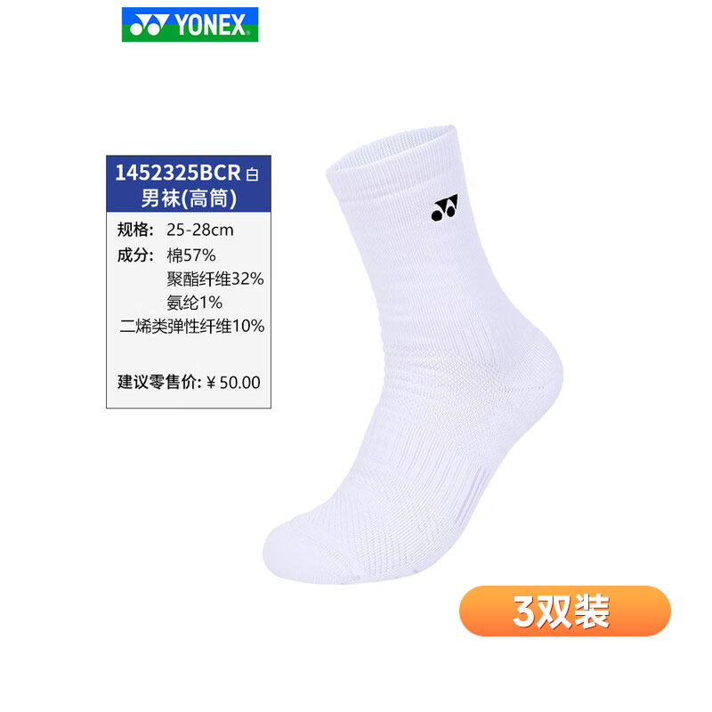 YONEX 尤尼克斯 羽毛球袜 YY男款运动袜 加厚毛巾底 1452325BCR 白色 25-28CM 本品参加新春焕活力满129减20 299减50 499减80 999减120元大促!