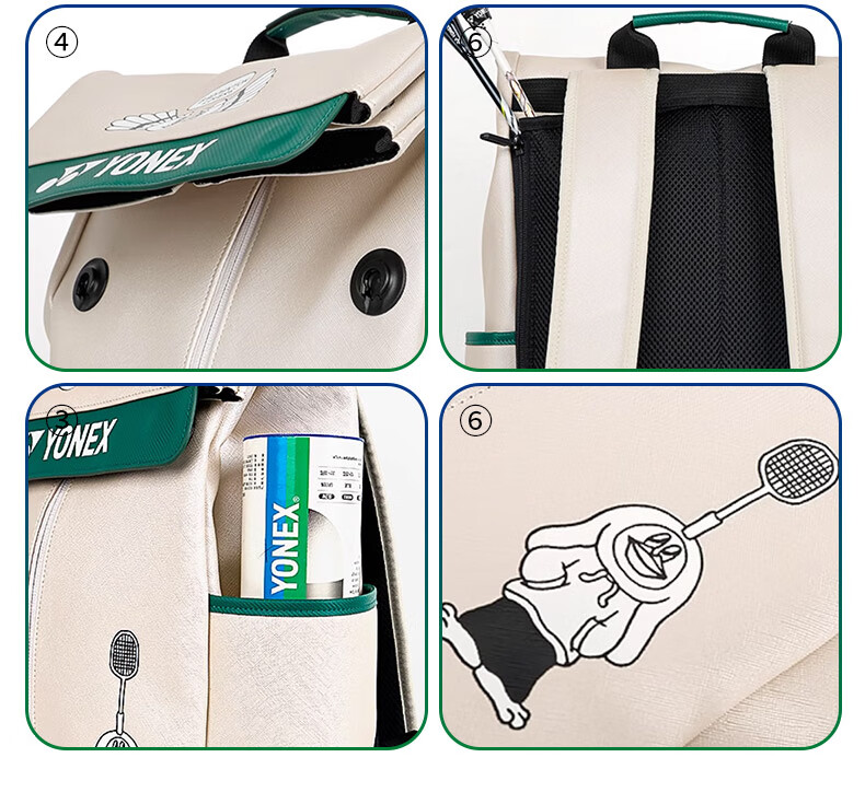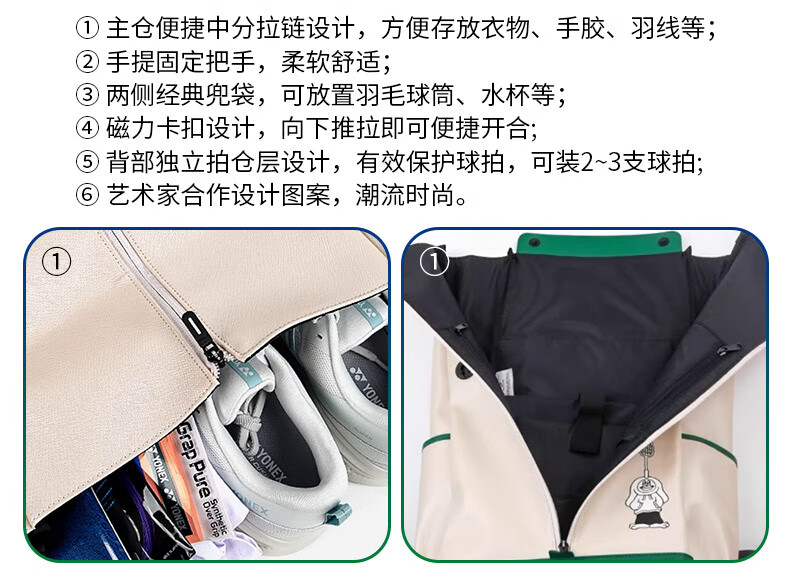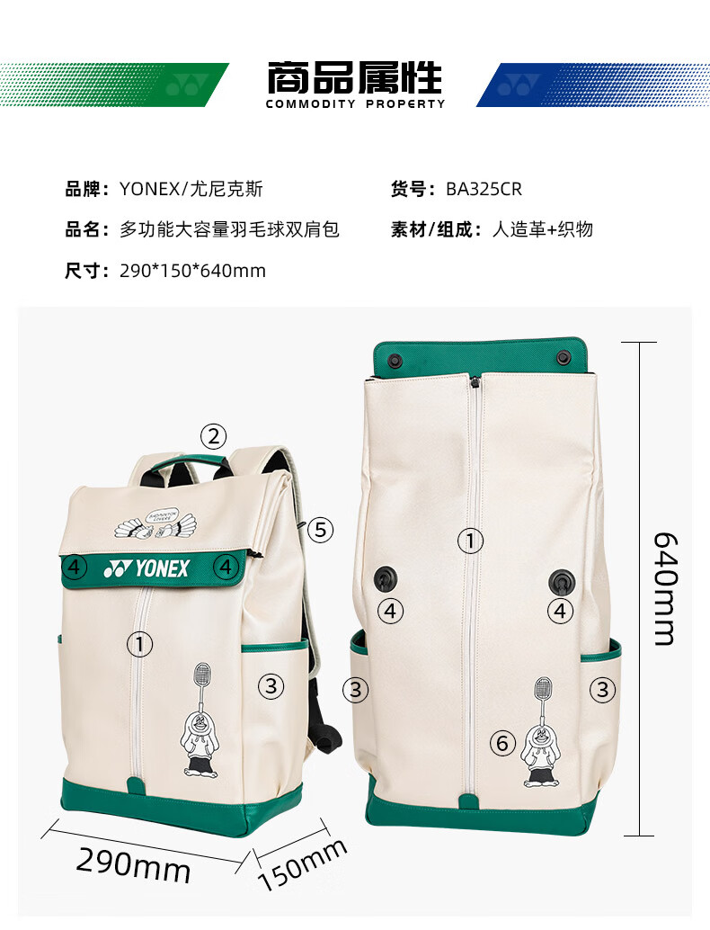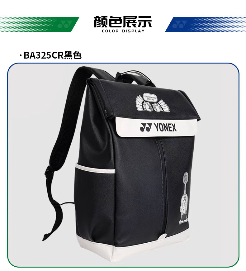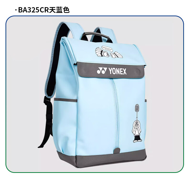 YONEX尤尼克斯羽毛球包 时尚联名款 大容量双肩运动背包 yy便携拍包 BA325CR 黑/天蓝/卡其米 艺术家联名 独立拍仓 大容量