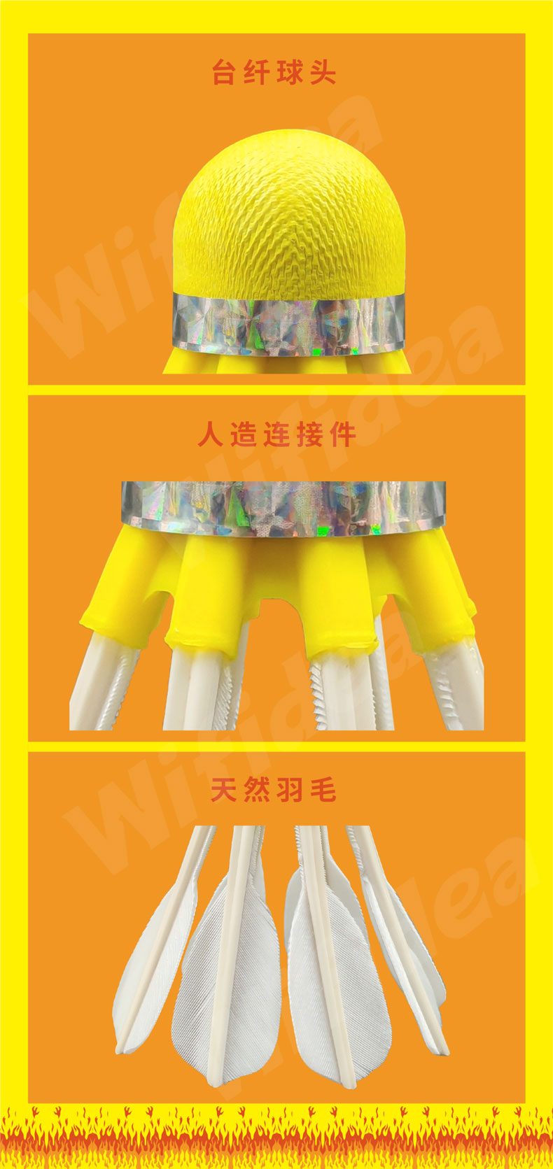 “无线想象”羽毛球不老传说品牌采用A+AB级飞行标准,轨迹稳定、落点精准,满足不同选手的要求!