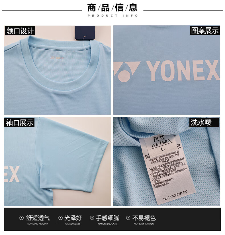 YONEX 尤尼克斯 羽毛球服 女款 圆领短袖T恤 速干透气运动比赛服 215095BCR 暗蓝色 本品参加会员回馈季满129减20 299减50 499减80 999减150元大促!