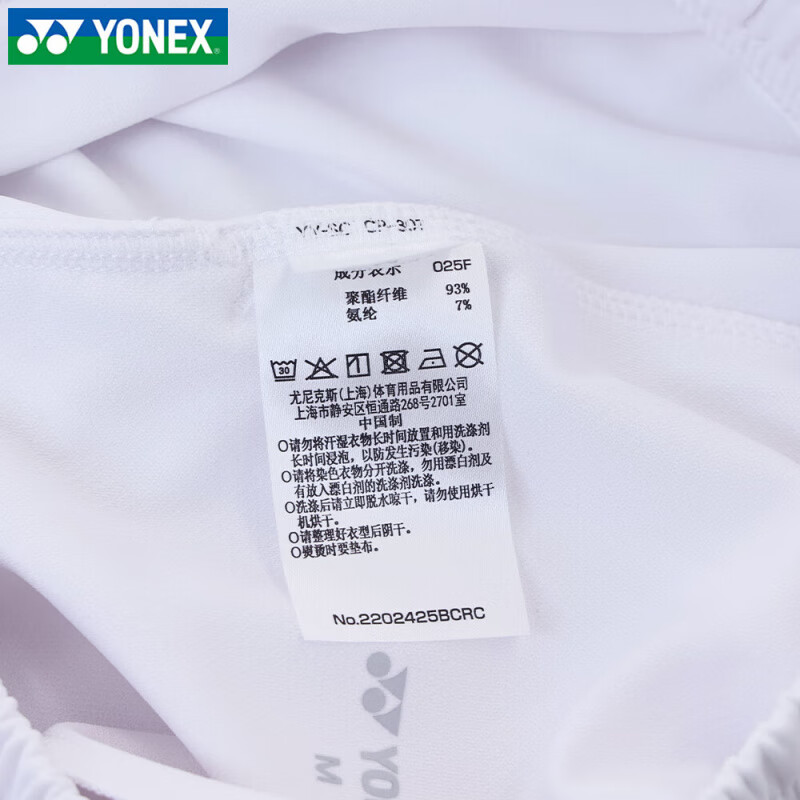YONEX 尤尼克斯 羽毛球服 女款运动短裤 跑步吸汗速干裤 2202425BCR 白色 柔软舒适 吸湿排汗 透气快干