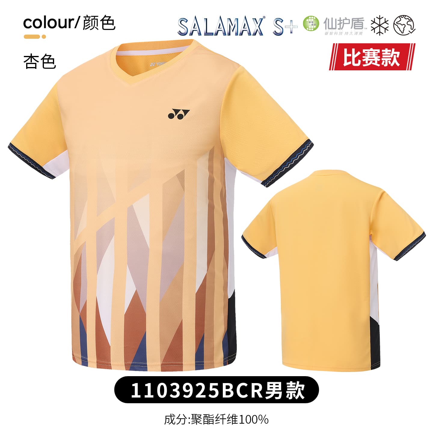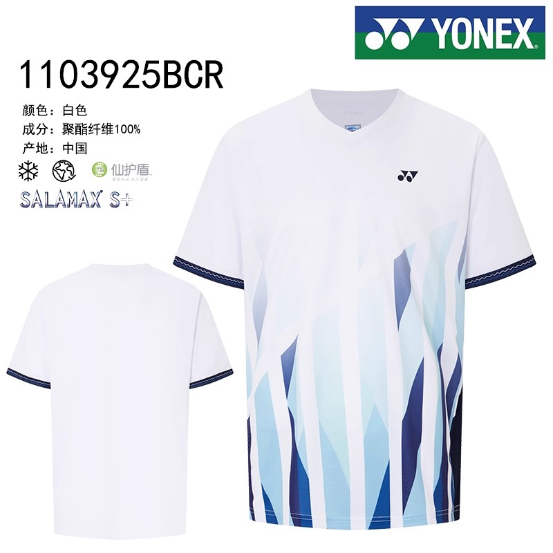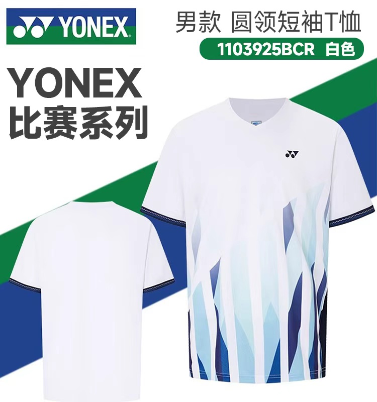 YONEX 尤尼克斯 羽毛球服 男款 圆领短袖T恤 YY比赛训练 吸汗运动服 1103925BCR 白色 吸汗速干 穿着舒适