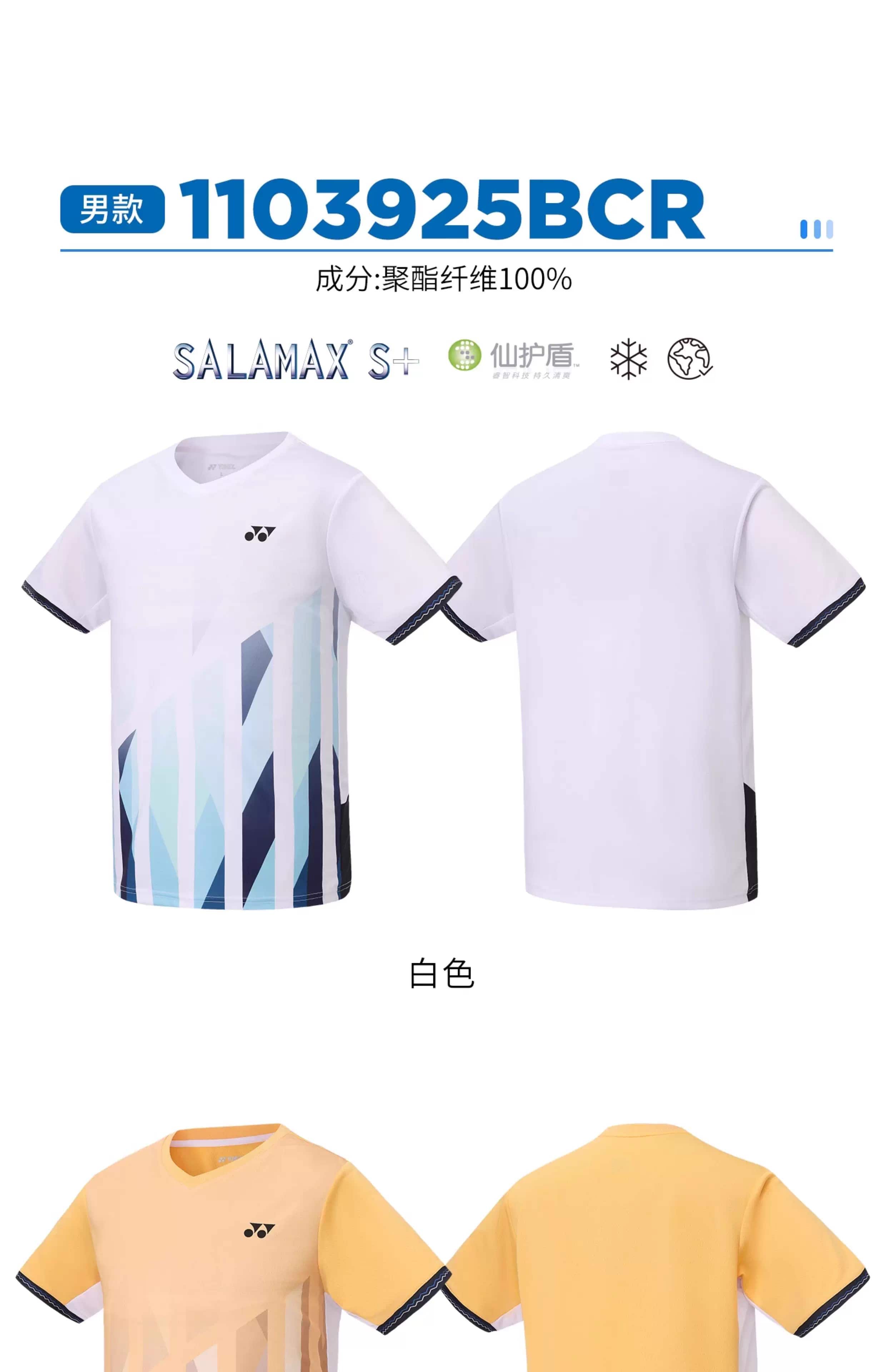 YONEX 尤尼克斯 羽毛球服 男款 圆领短袖T恤 YY比赛训练 吸汗运动服 1103925BCR 杏色 吸汗速干 穿着舒适