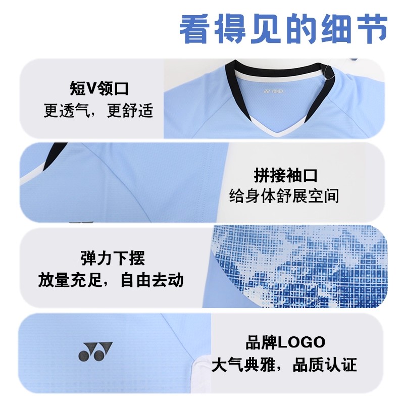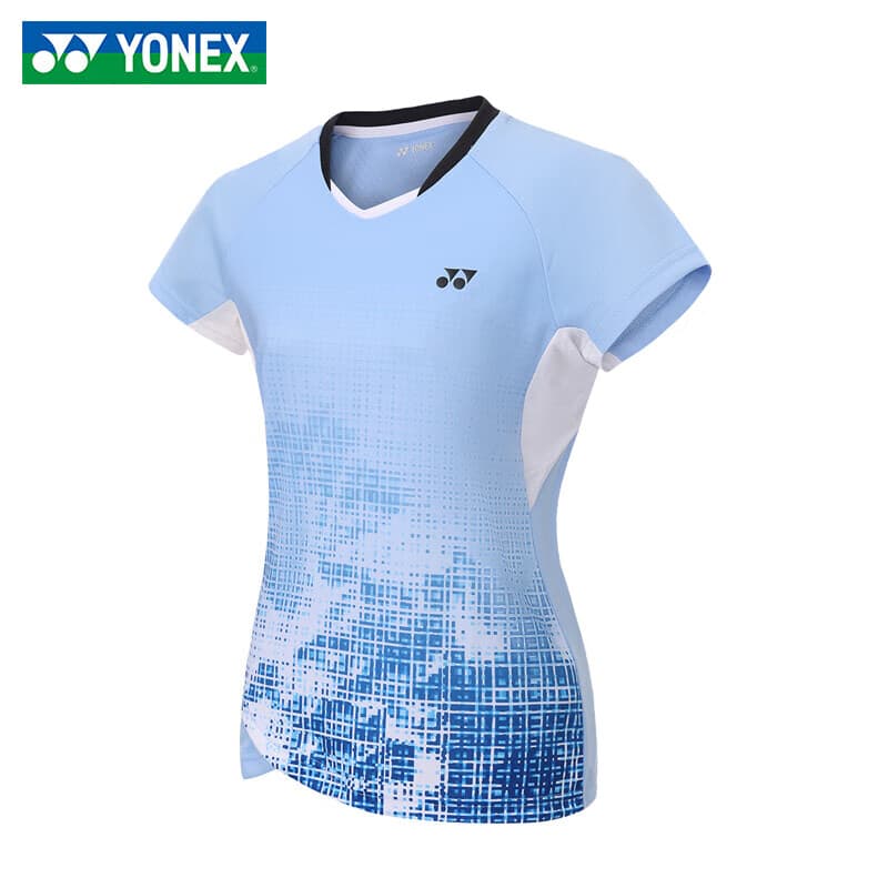 YONEX 尤尼克斯 羽毛球服 女款圆领T恤 运动短袖 透气速干训练比赛服 2102625BCR 水晶蓝 透气排汗 清爽速干