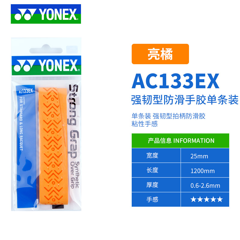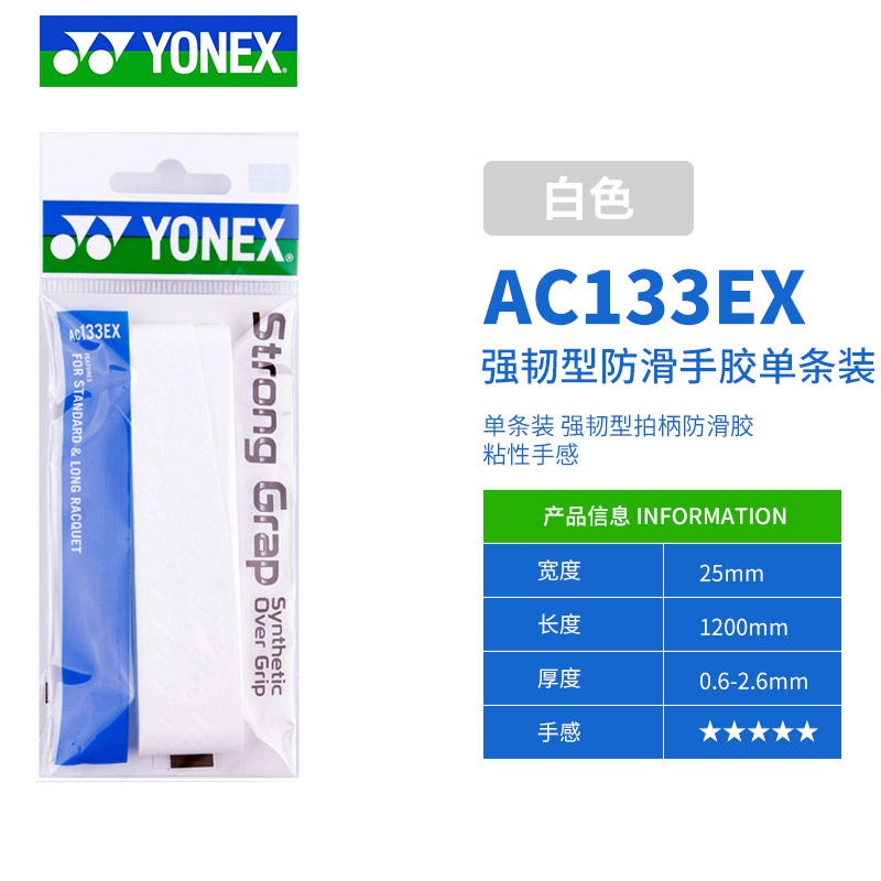 尤尼克斯 YONEX 羽毛球手胶 YY羽毛球拍缠绕带 超薄吸汗带 AC133EX 单条装 本品参加11.11同价抢先购满129减20 299减50 499减80 999减150 1299减200元大促!