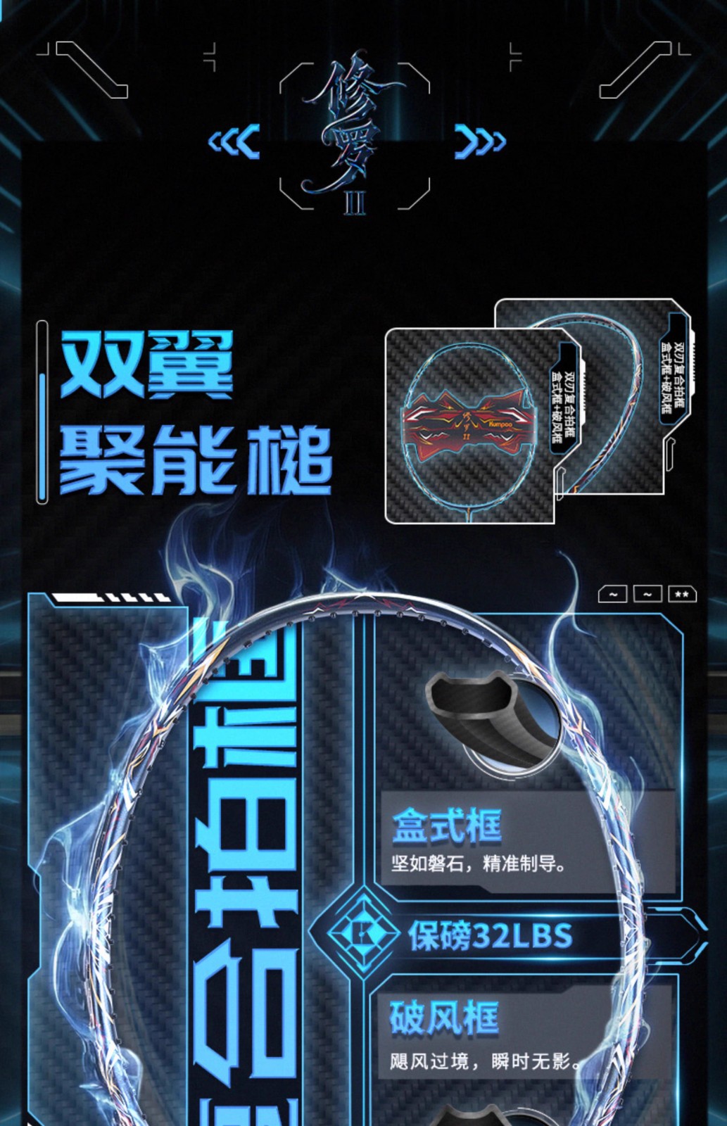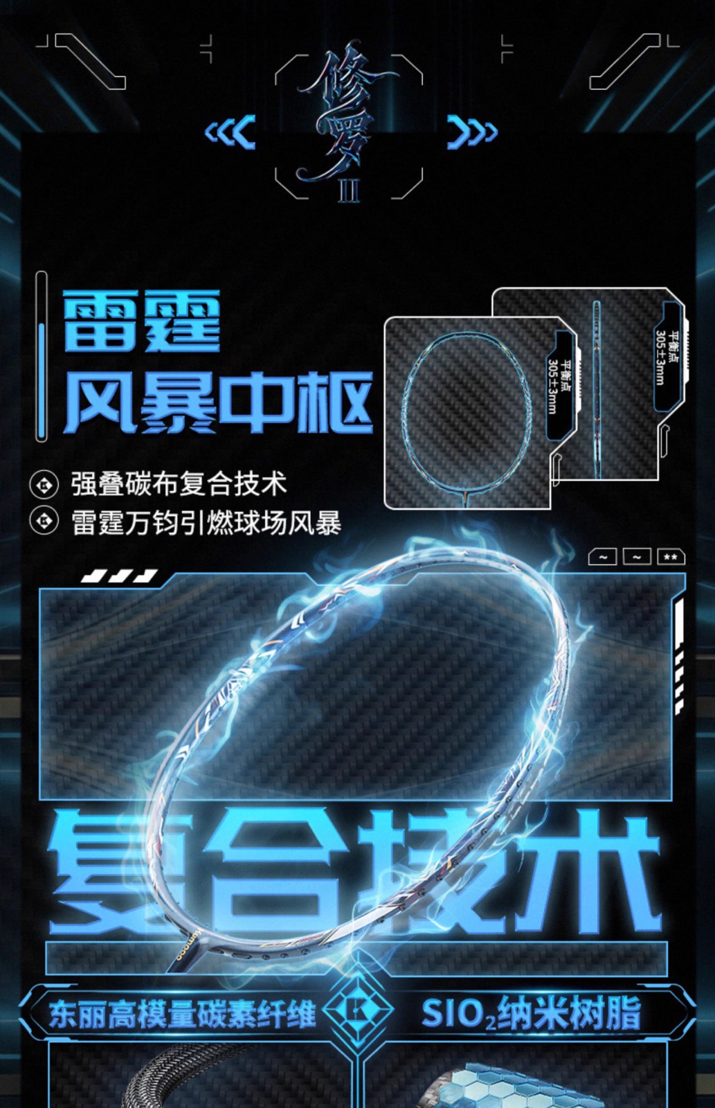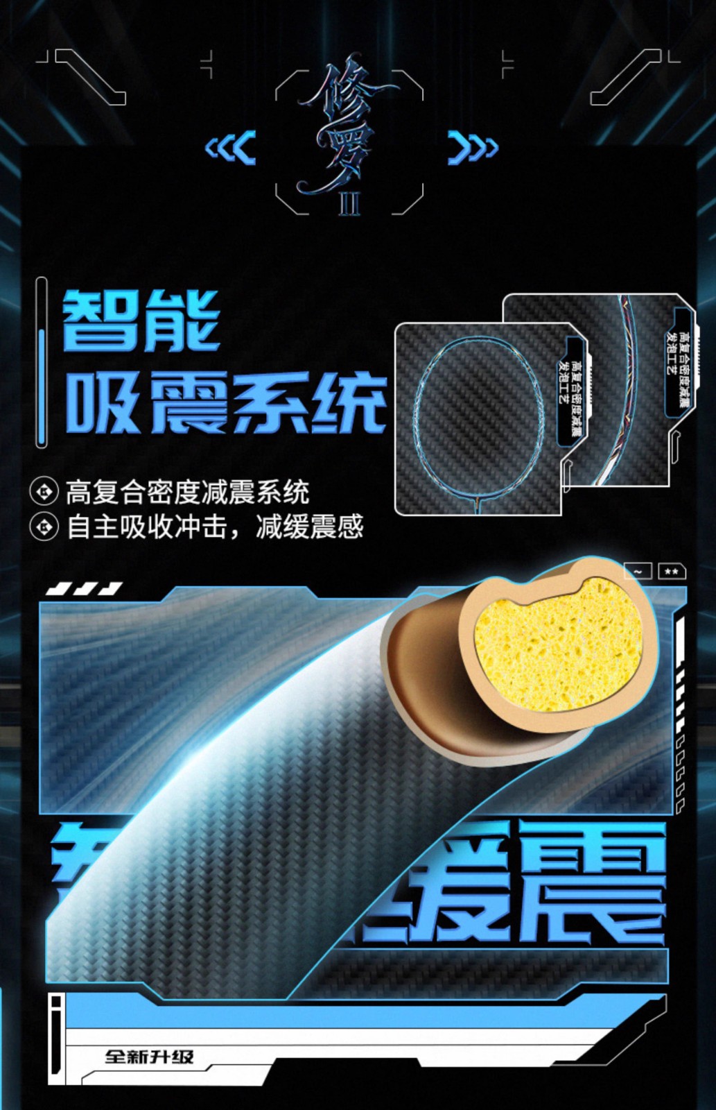 拍框材质:高模量碳素纤维+内发泡+NANO材料(纳米树脂)+强叠碳布复合技术