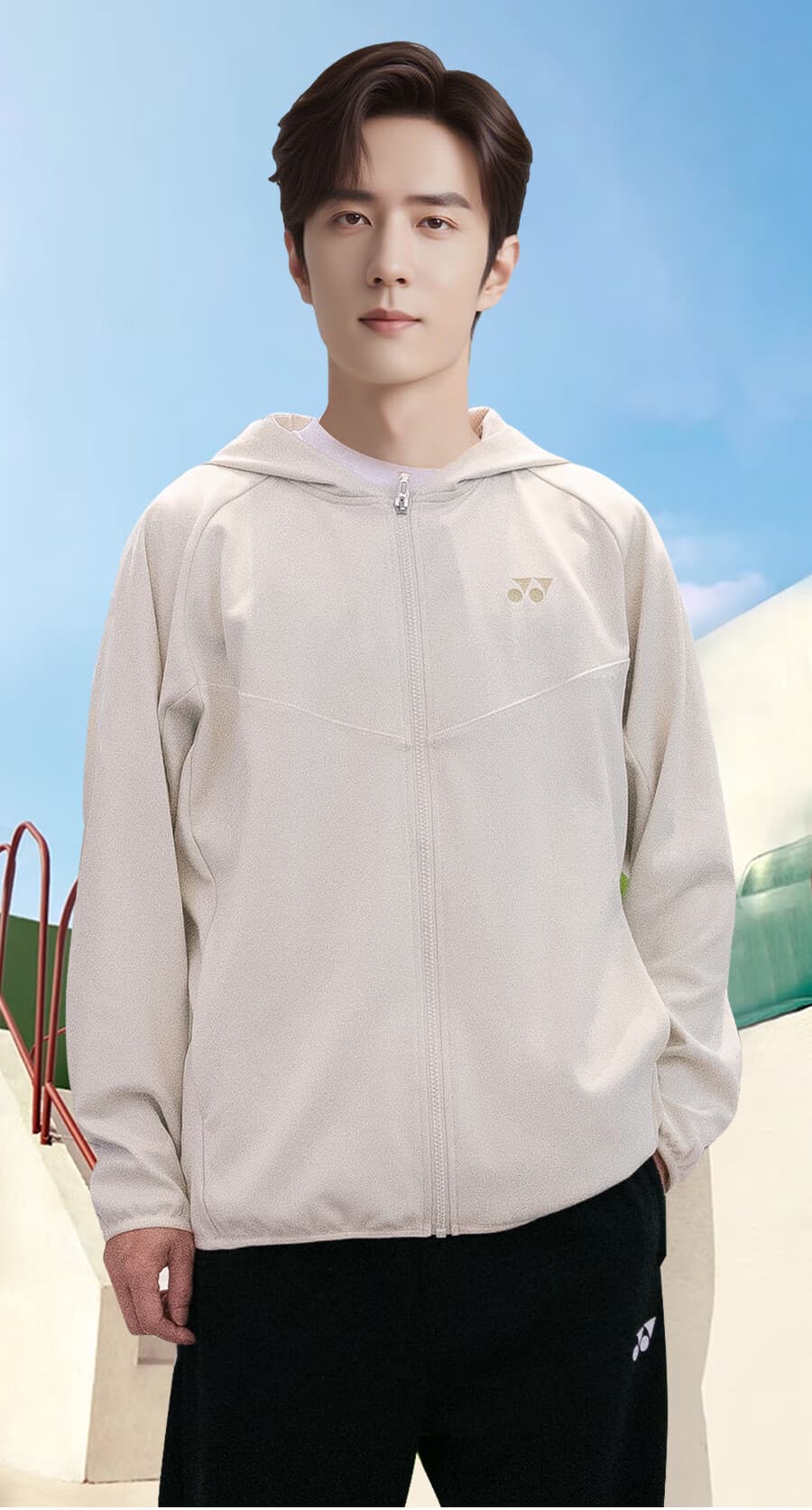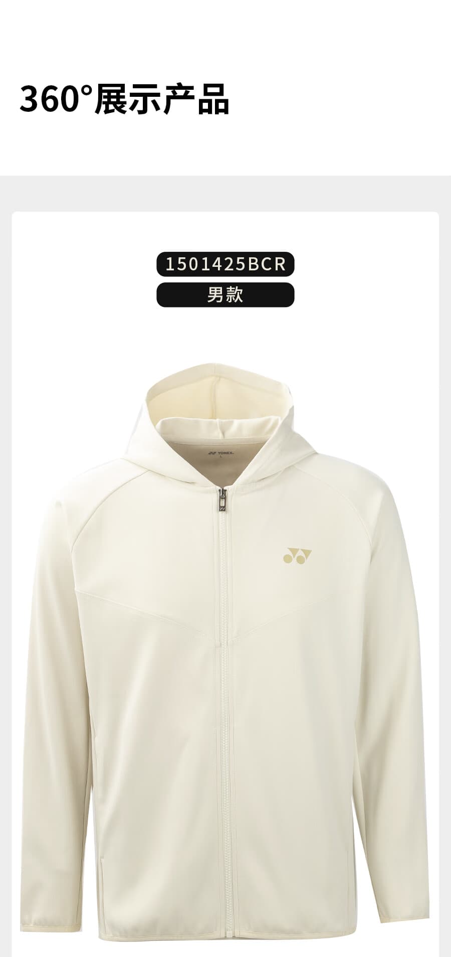 尤尼克斯YONEX羽毛球服 男款 运动外套连帽上衣速干长袖 1501425BCR_464 沙滩灰 本品参加超级宠粉日满129减20 299减50 499减80 999减120元大促!