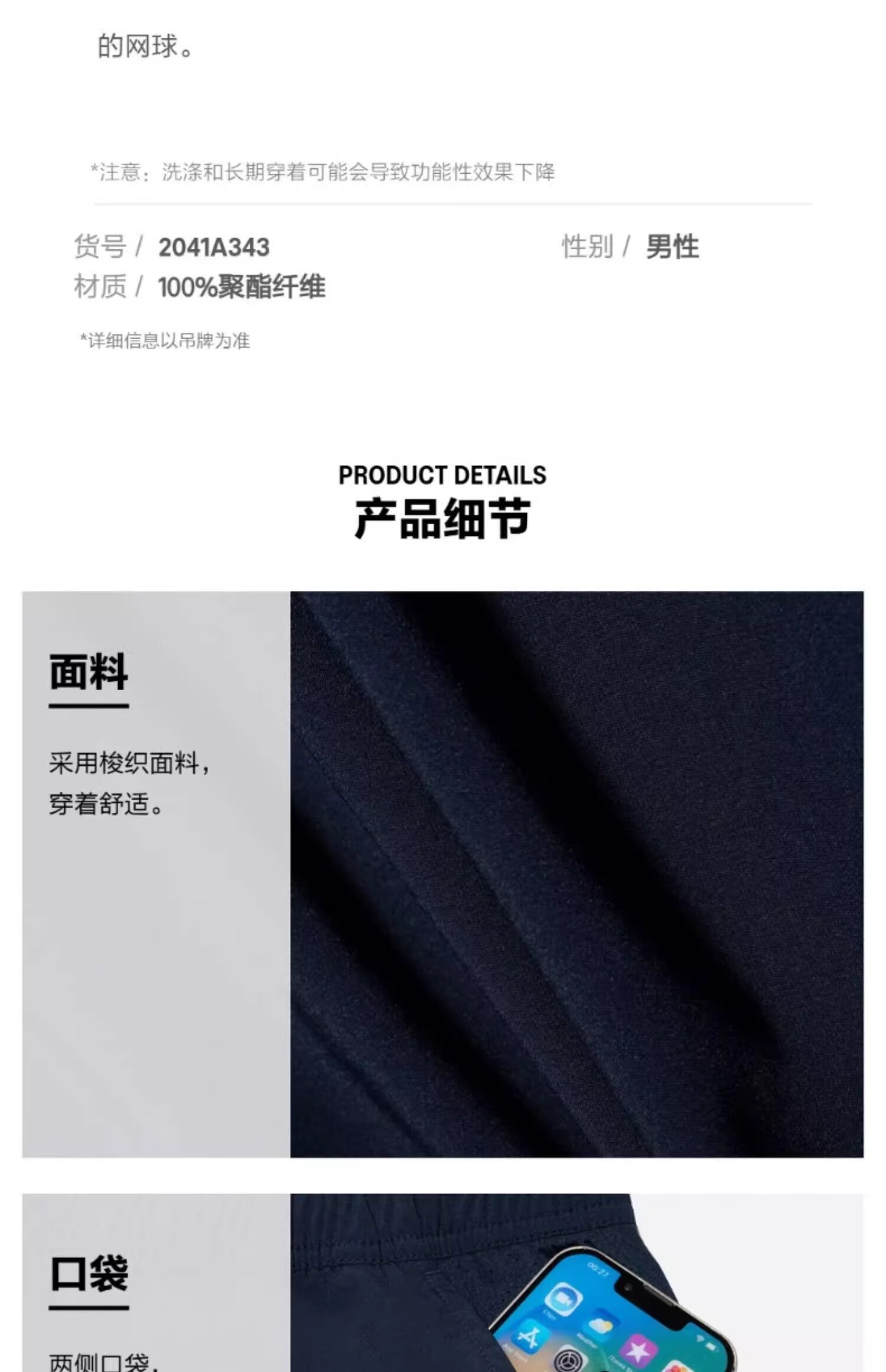 ASICS亚瑟士网球服 男子网球短裤梭织透气轻量弹力网球运动短裤 2041A343-401 蓝色 轻量设计,可调节抽绳设计,提高舒适性!