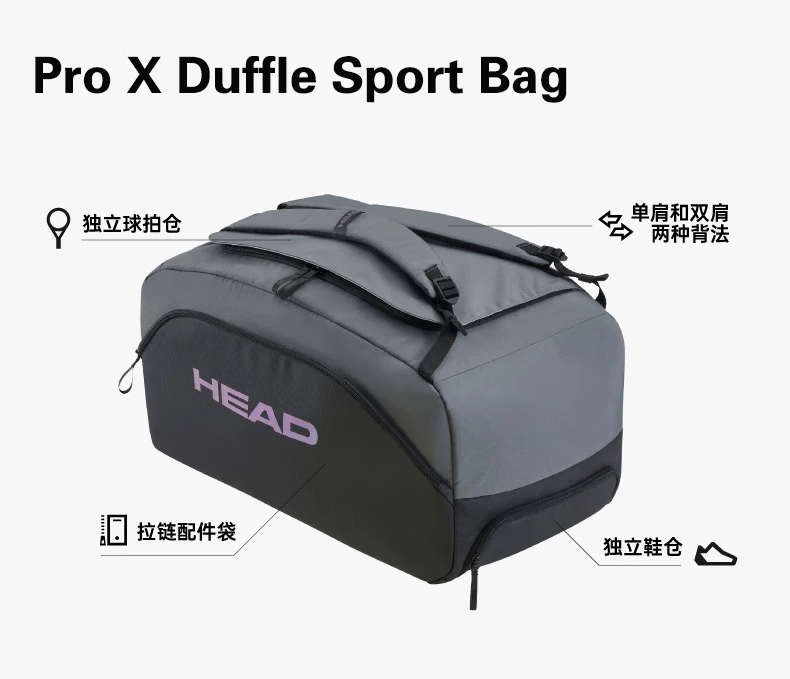 HEAD海德网球包 PRO X系列新款网球包双肩包旅行包运动赛场衣物包 260155 黑灰色 本品参加12.12同价抢先购满129减20 299减50 499减70 699减80 999减150元 1299减180元大促!