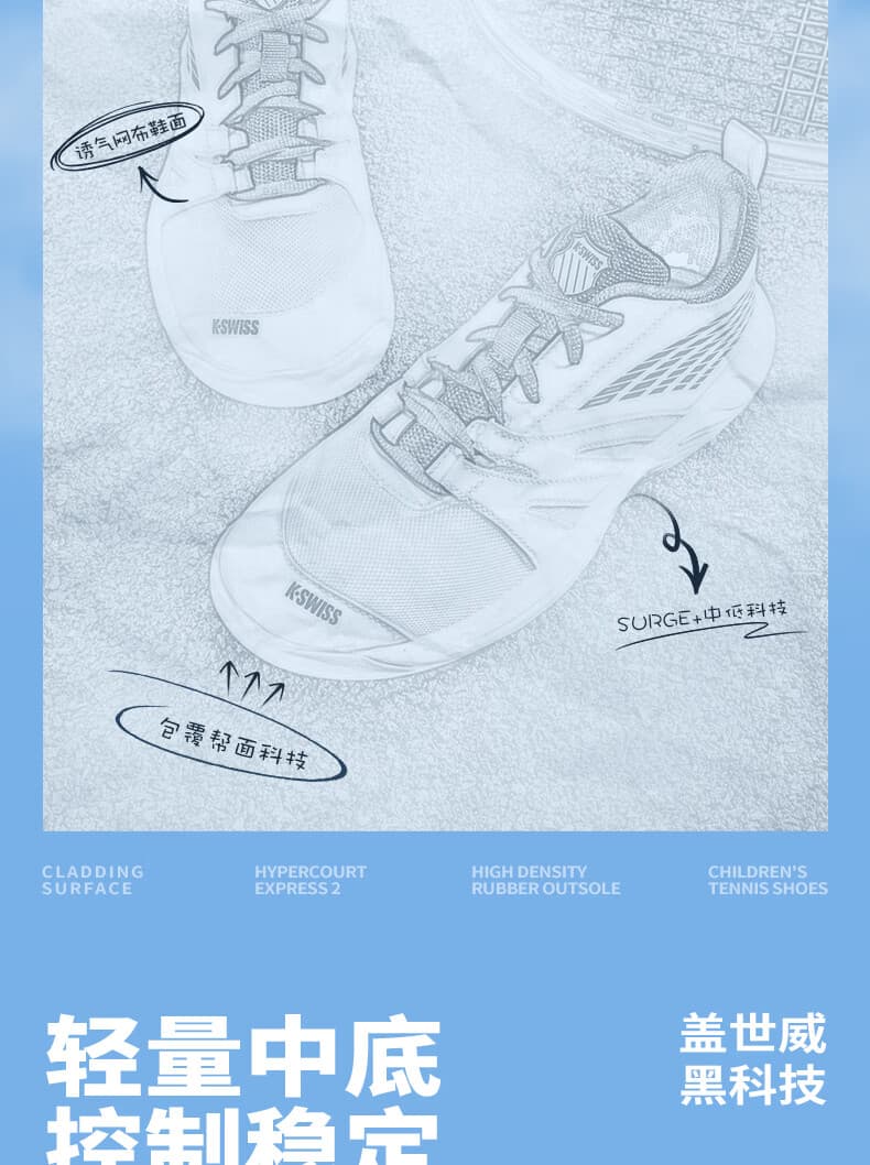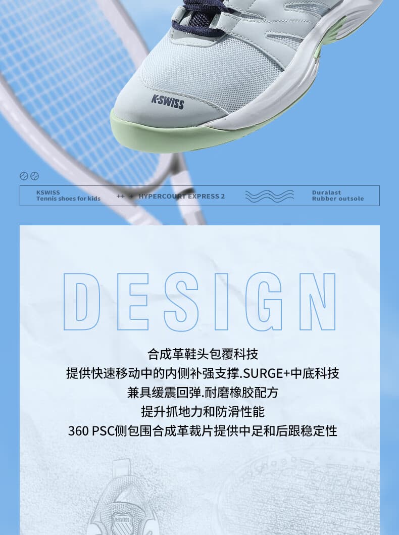 KSWISS盖世威网球鞋 新款SPEEDTRAC儿童青少年男女耐磨专业运动鞋 87392-684 藕粉色/白点橙 高回弹,提供轻量舒适的运动体验