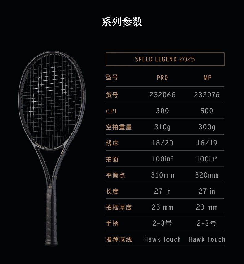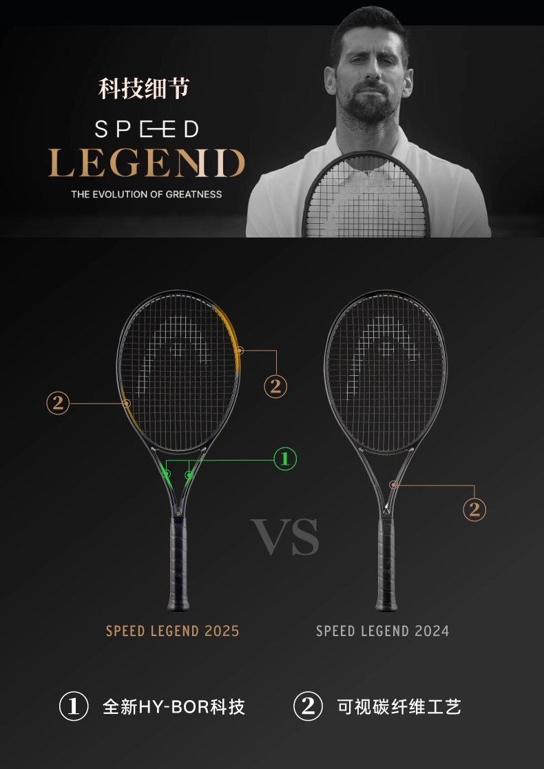HEAD海德网球拍 25新款L5德约科维奇同款限定小黑拍Speed LEGEND PRO全碳素专业拍 232066 100/310g