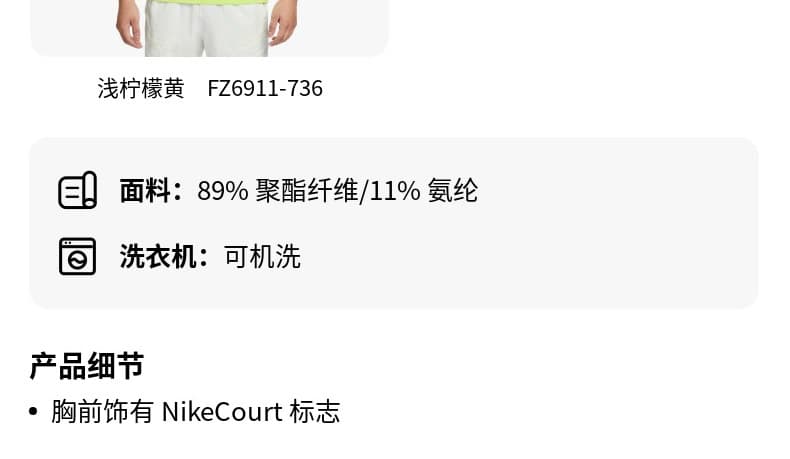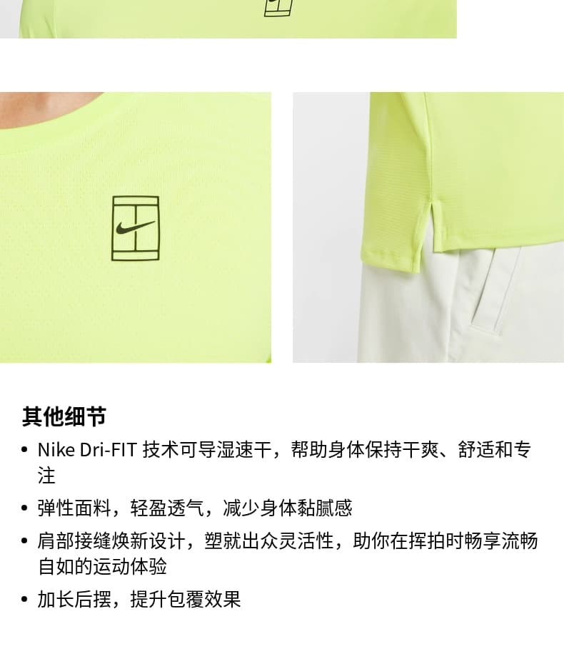 Nike耐克网球服 透气轻薄圆领上衣短袖T恤快干运动短袖 FZ6911-736 柠檬黄 柔软舒适 吸汗透气,助你运动自如!
