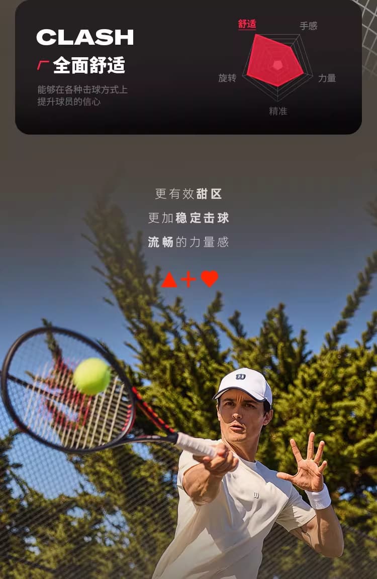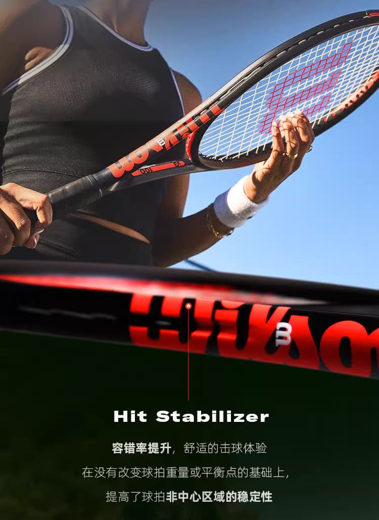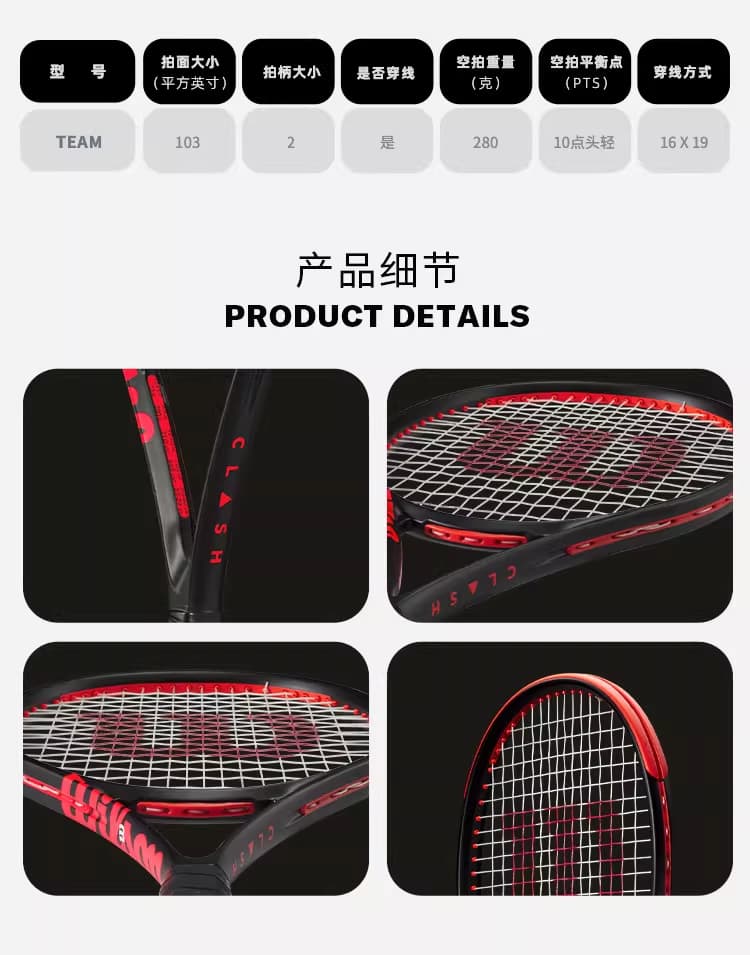 Wilson威尔胜网球拍 25新款CLASH TEAM 103 V3全碳素专业网拍全能型网球拍【成品拍】 103/280g WR180710 黑红 初学者特别款,全面舒适,容错率提升,舒适的击球体验!