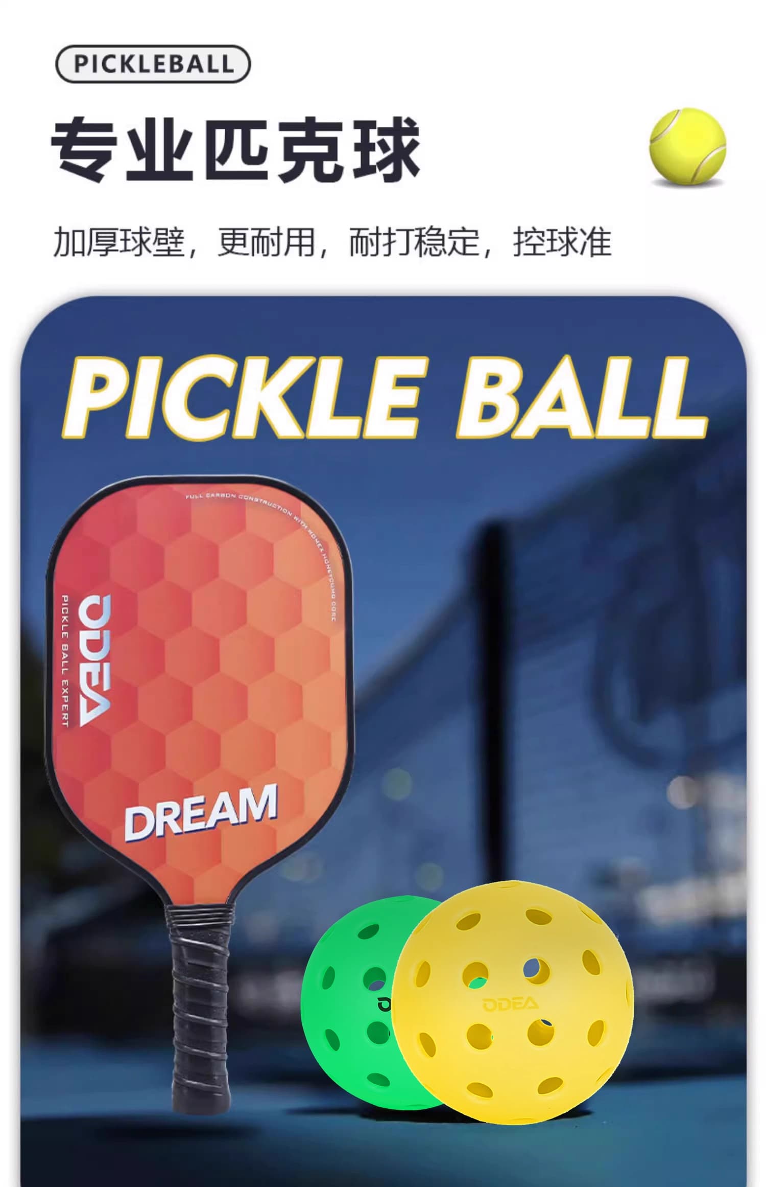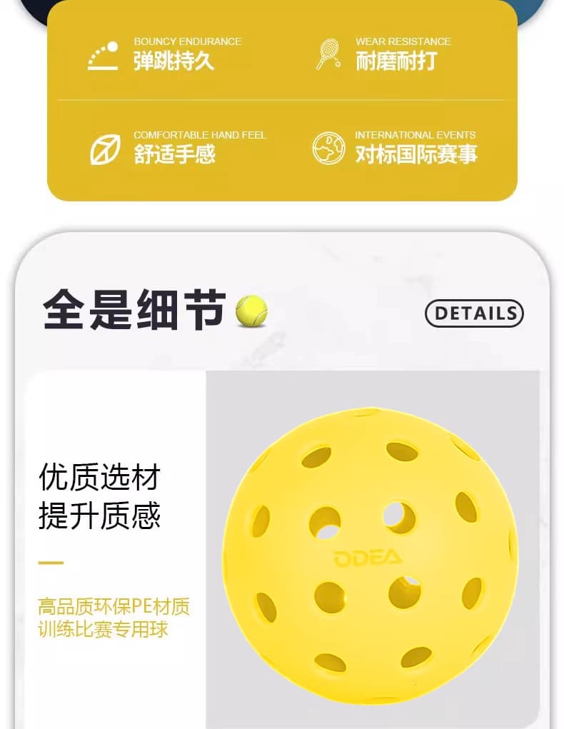 Odear欧帝尔 匹克球专用球专业训练比赛洞洞球 PK-88滚塑 40孔绿色 1个散装 多场地适用,耐打稳定