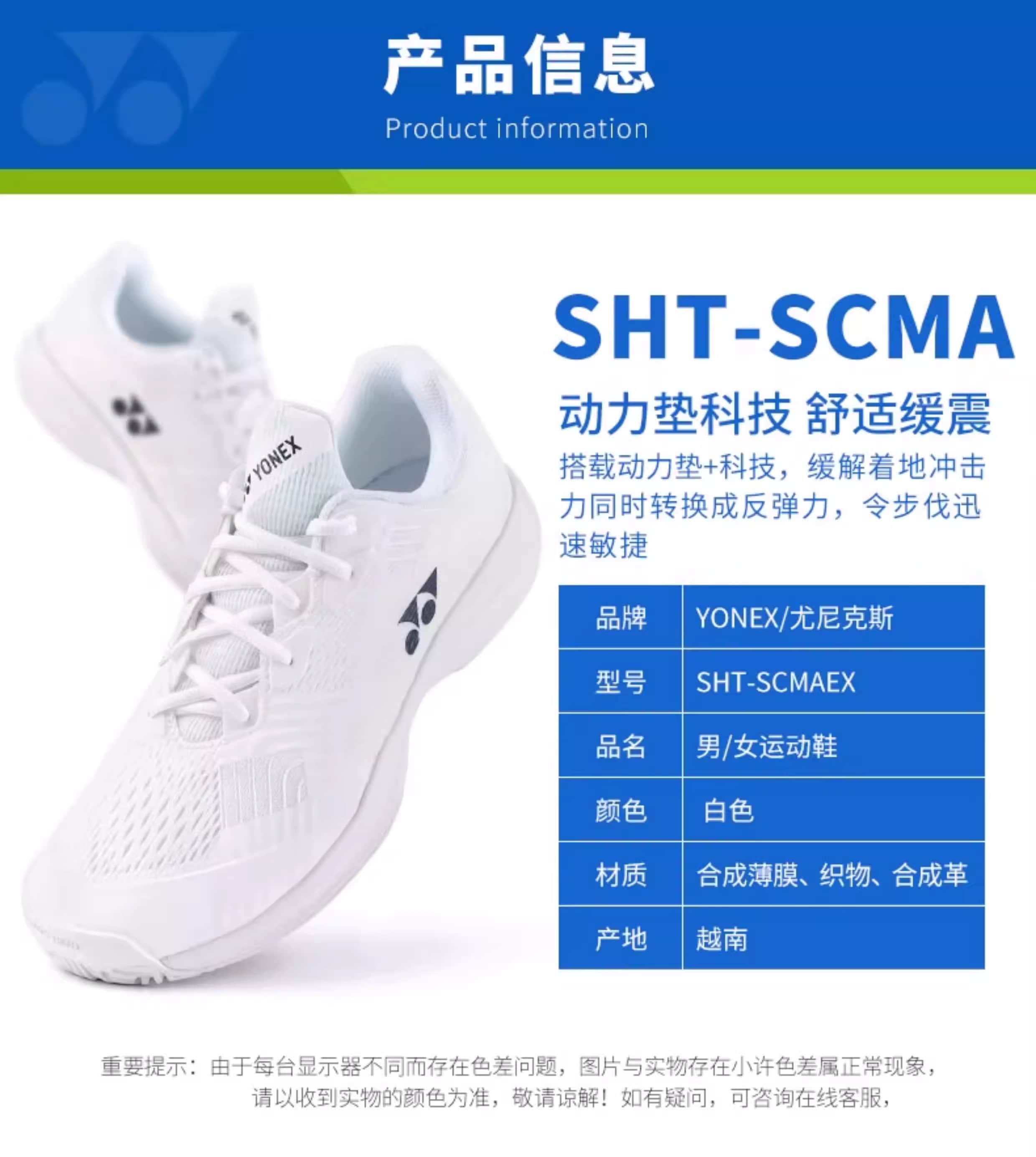 YONEX尤尼克斯网球鞋 防滑减震专业比赛训练网球羽毛球运动鞋SHTSCMAEX_011 白色