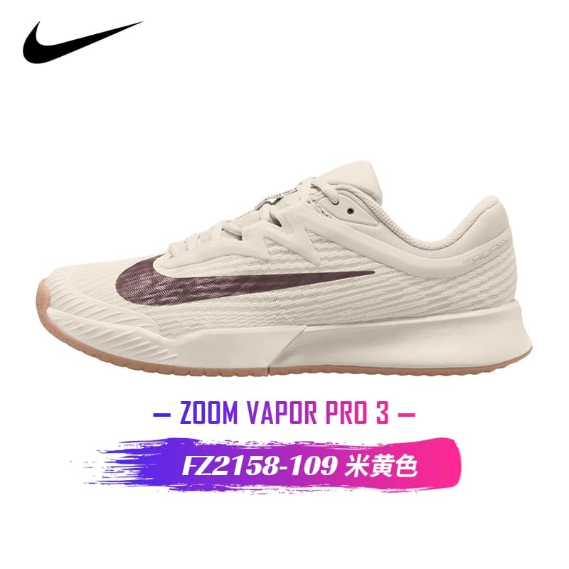 Nike耐克网球鞋 Zoom Vapor Pro 3气垫缓震透气运动网球鞋【女款】 FZ2158-109 米黄色 本品参加超级宠粉日满129减20 299减50 499减80 999减120元大促!