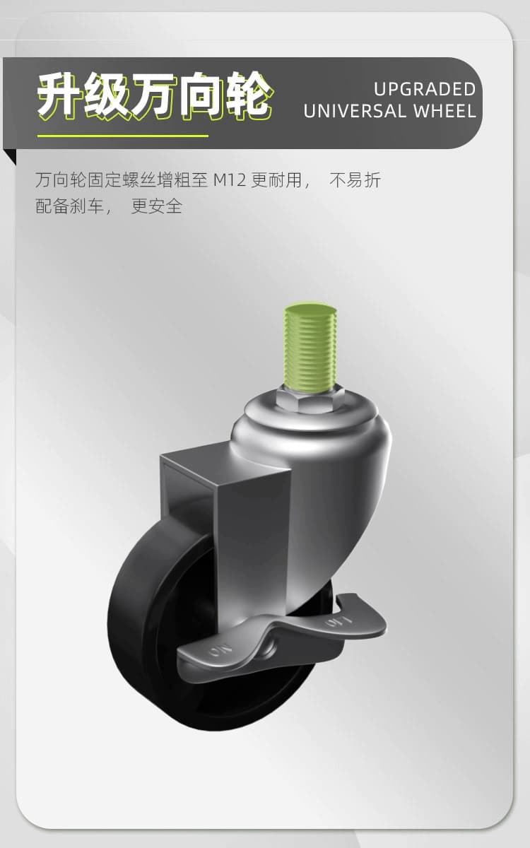 不易折万向轮固定螺丝增粗至 M12 更耐用,