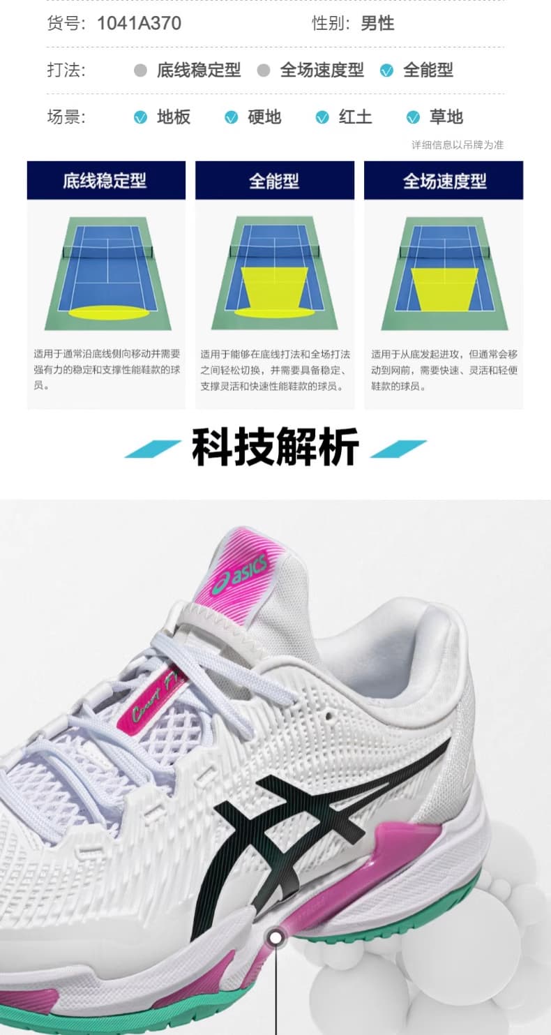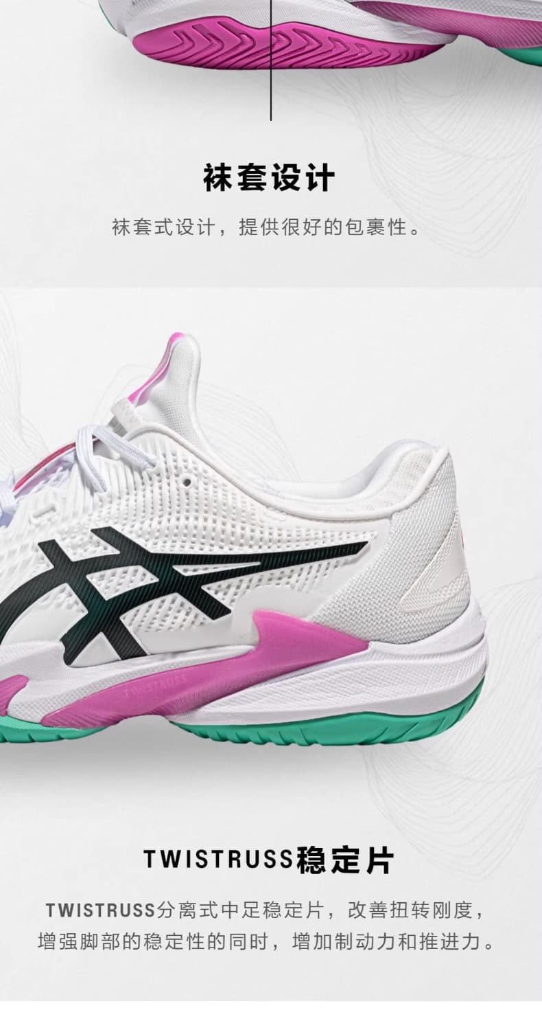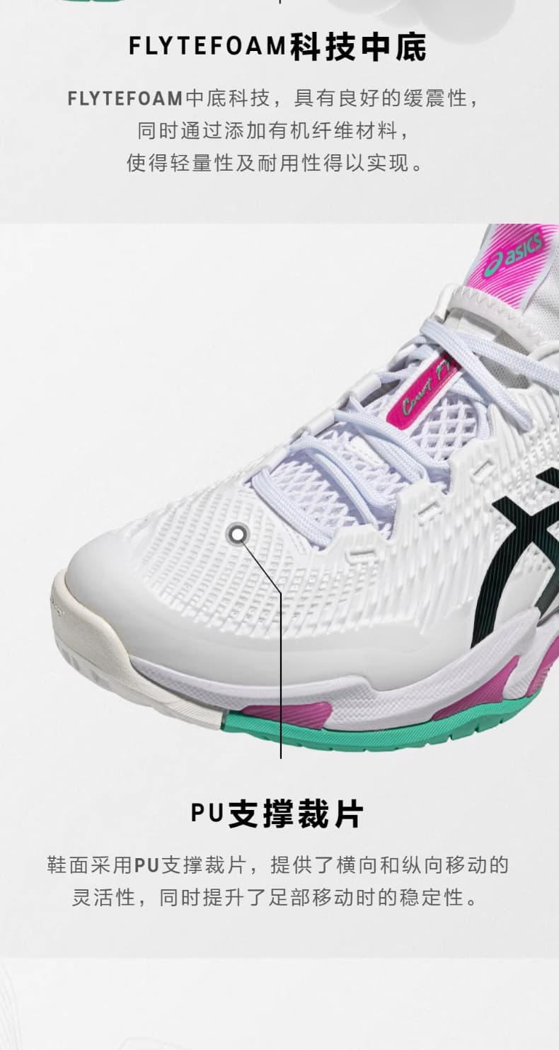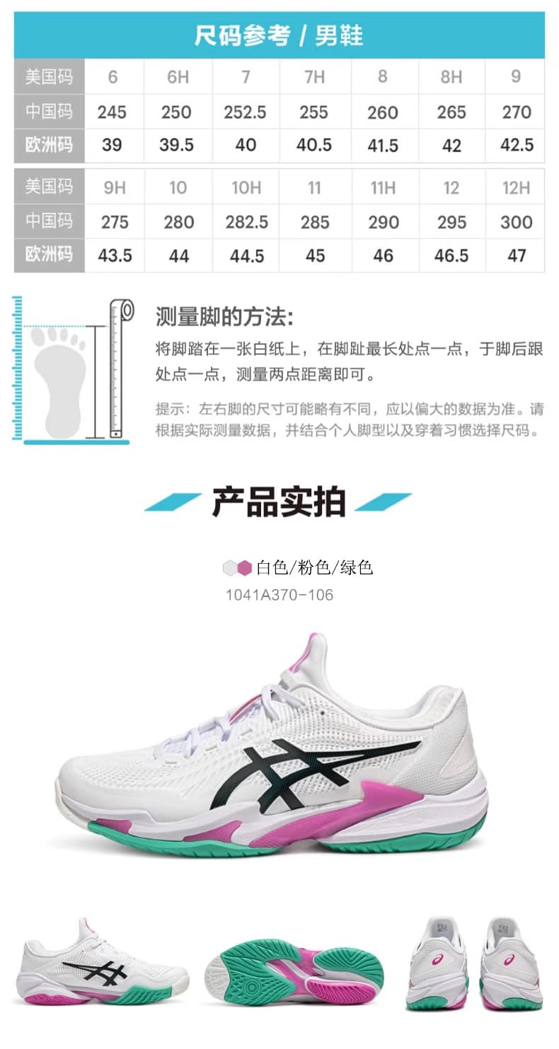 ASICS亚瑟士网球鞋 新款COURT FF3男子全能型网球鞋稳定防滑专业网球鞋 1041A370-106 白绿粉