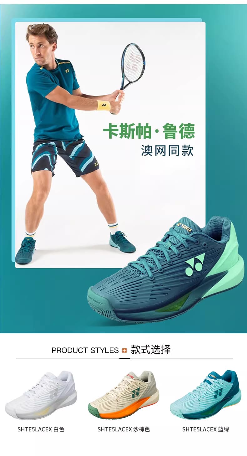 YONEX尤尼克斯网球鞋 鲁德同款防滑耐磨减震网球运动鞋 SHTE5MACEX_097 藏青/红 舒适耐磨,缓震防滑