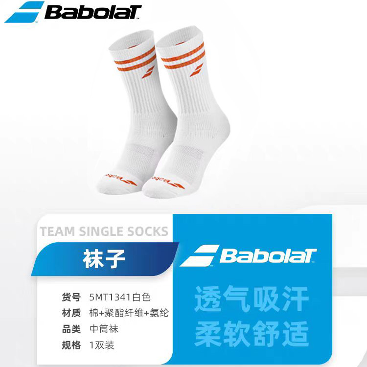 Babolat百保力 网球运动袜男女毛巾底吸汗透气中筒袜【一双装】5MT1341 白色/樱桃番茄红 舒适护脚 吸湿散热 多重防护 功能性运动袜!