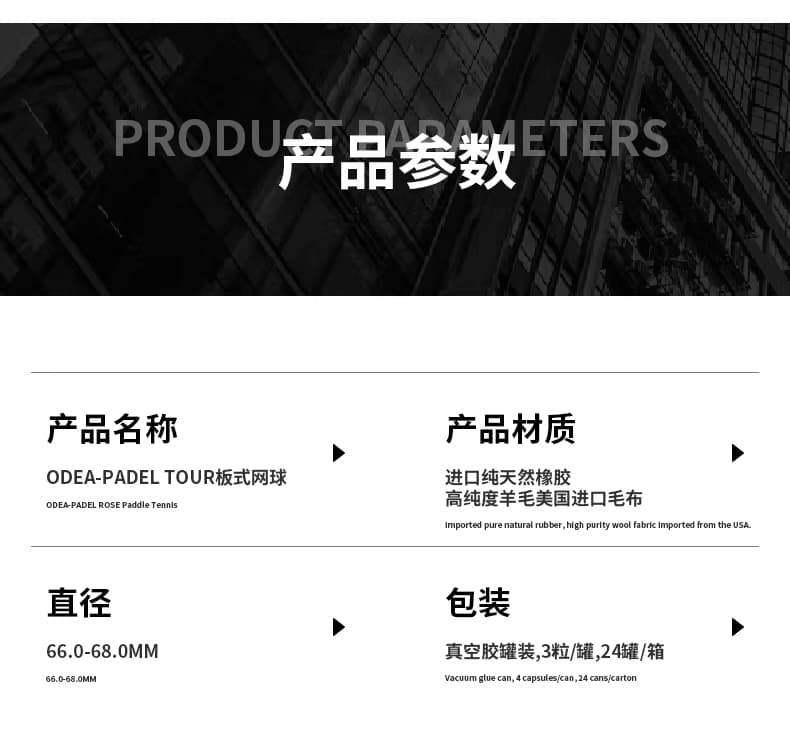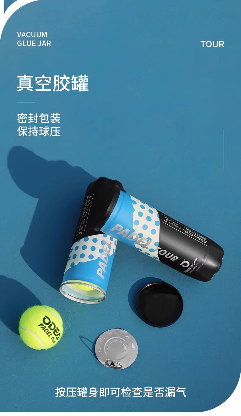 ODEA欧帝尔 板式网球PADEL TOUR高弹性耐打耐磨笼式网球比赛球【单罐】三颗装 高弹耐磨