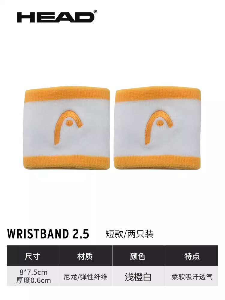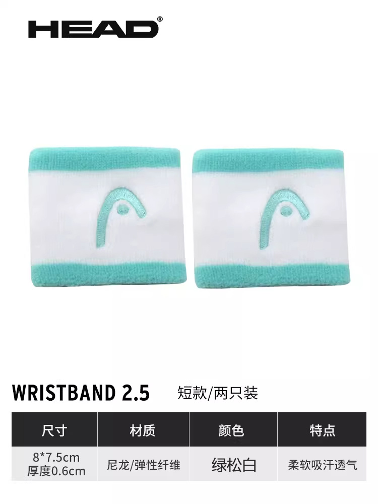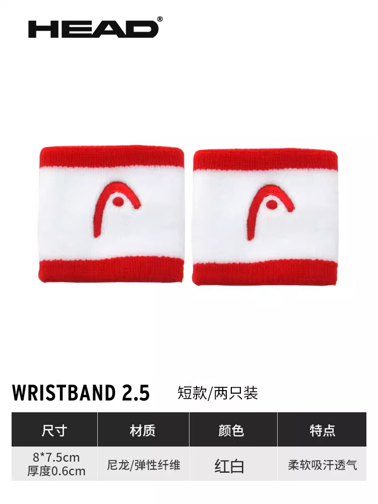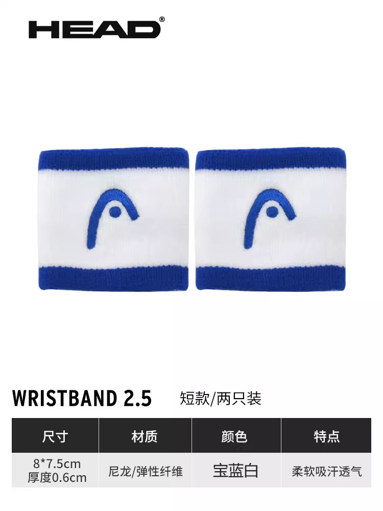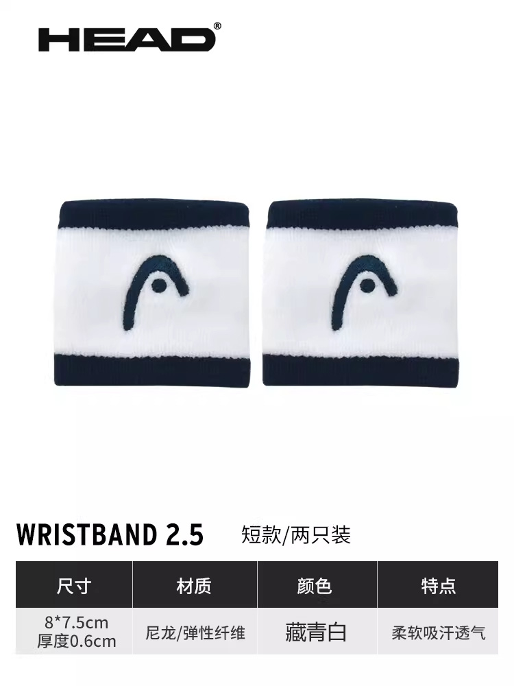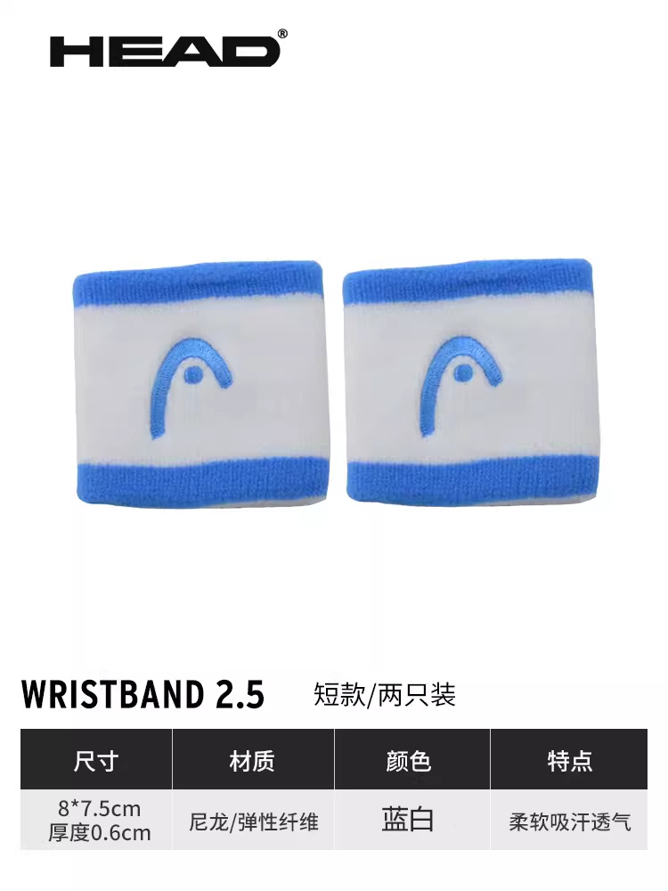HEAD海德 运动护腕Wristband 2.5吸汗短款网球羽毛球篮球运动护腕【2只装】 285866 柔软舒适 吸汗透气!