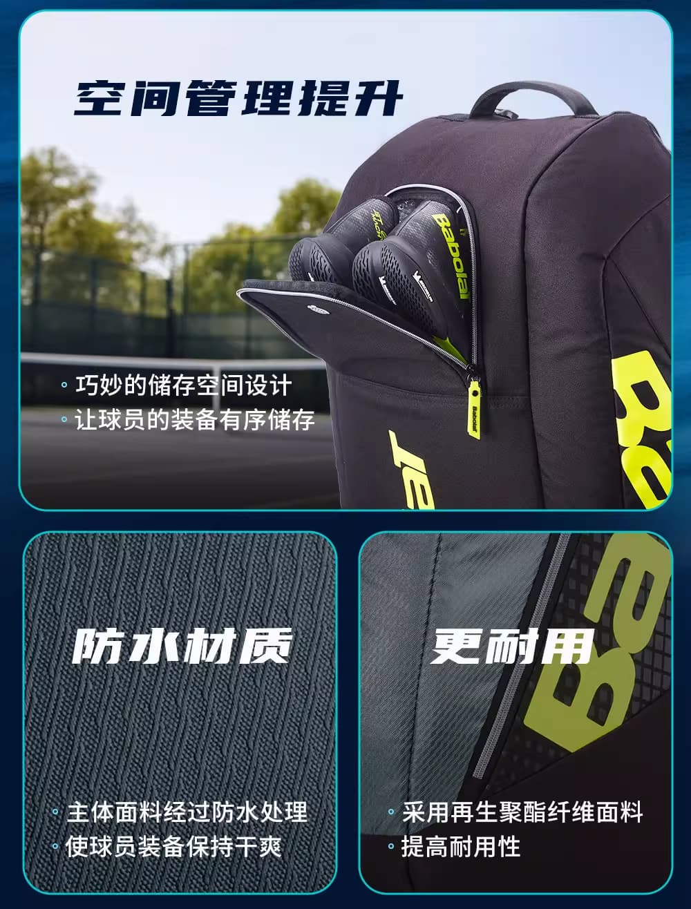 Babolat百保力网球包 新款PA系列阿尔卡拉斯同款网球包【12支装】 751238 金属灰/黑色/荧光黄 防水耐用,可容纳12支球拍!