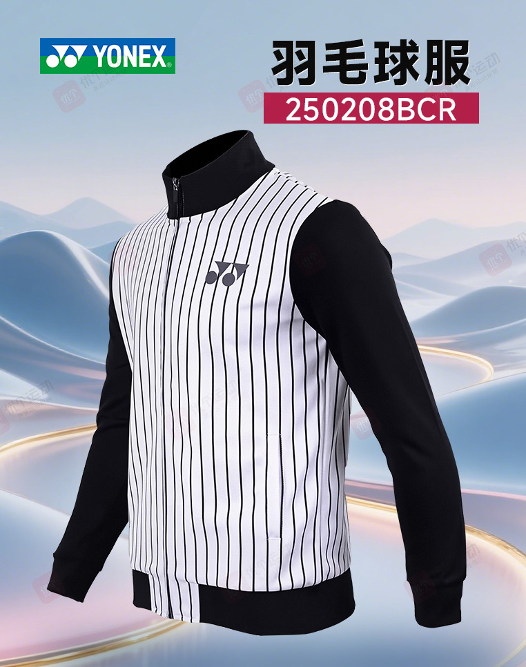 YONEX 尤尼克斯 羽毛球服 男女款 开衫外套 运动上衣 团队比赛训练服 250208BCR 黑/白 舒适透气 时尚百搭 特惠商品 售完无补!