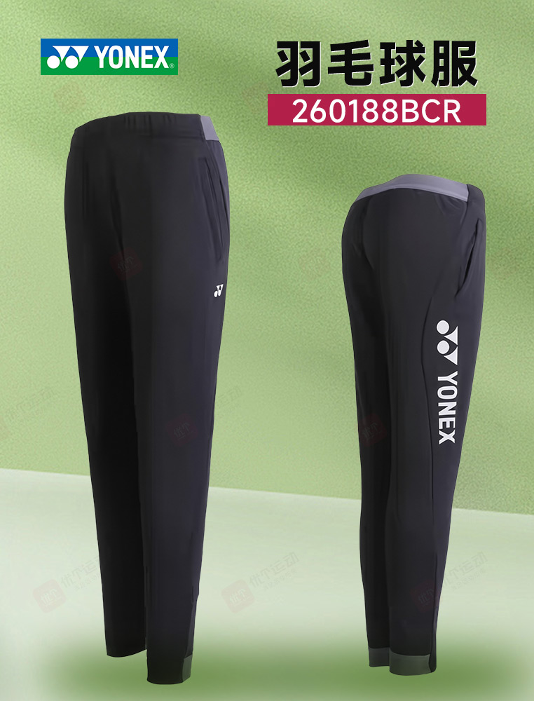 YONEX 尤尼克斯 羽毛球服 男女款 运动长裤 团队比赛训练服 260188BCR 黑色 亲肤舒适 弹力不勒 特惠商品 售完无补!