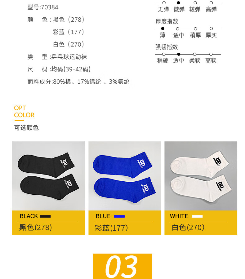 DONIC多尼克 乒乓球袜 男女同款运动吸汗袜 专业运动袜 70384 三色可选