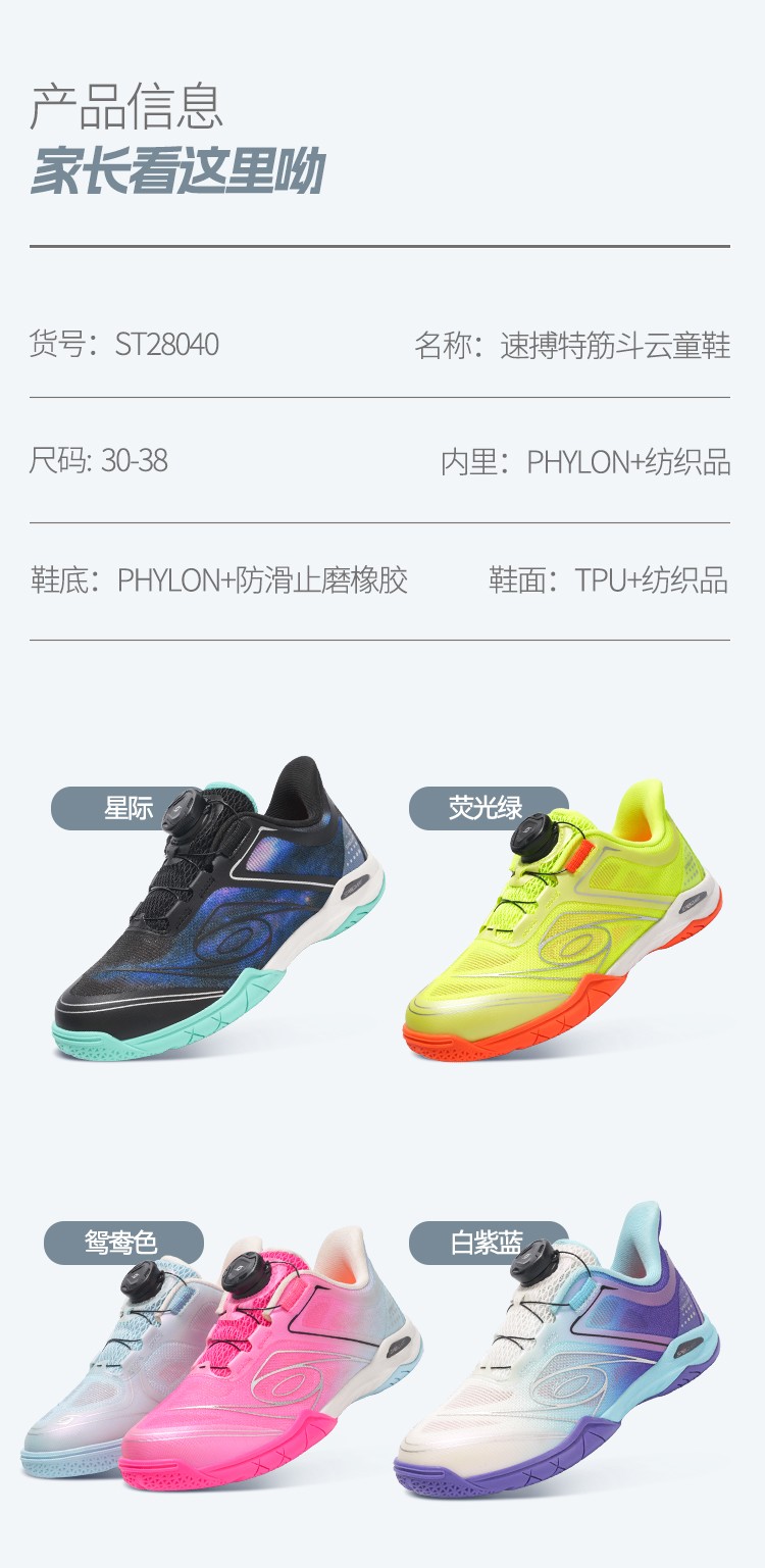 SPEED ART速搏特 28040 筋斗云 儿童乒乓球鞋 2025年新品 专业儿童训练乒乓球鞋 星际色 轻盈透气,耐穿防滑