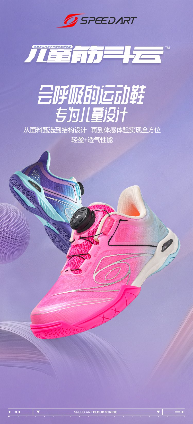SPEED ART速搏特 28040 筋斗云 儿童乒乓球鞋 2025年新品 专业儿童训练乒乓球鞋 荧光绿 轻盈透气,耐穿防滑