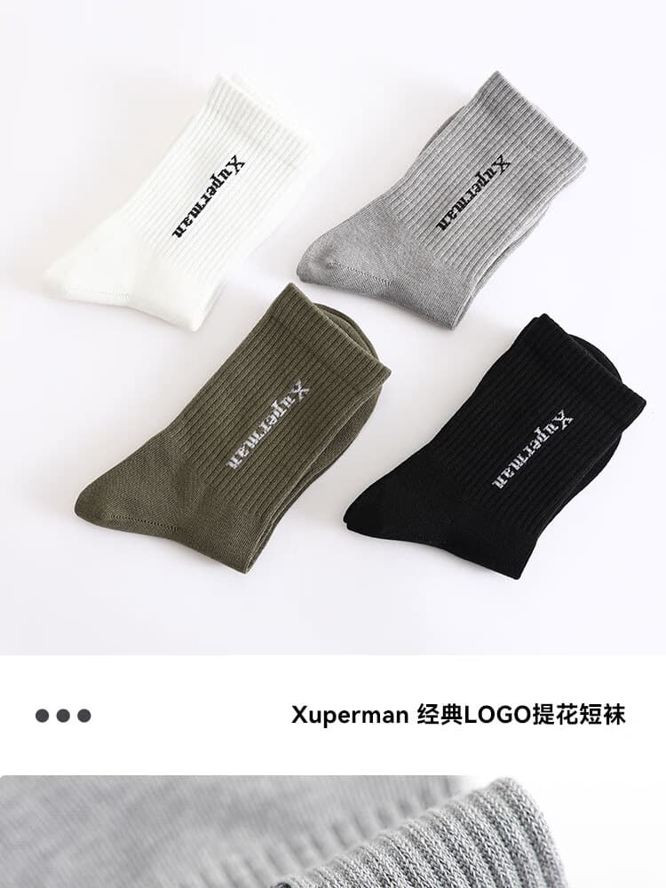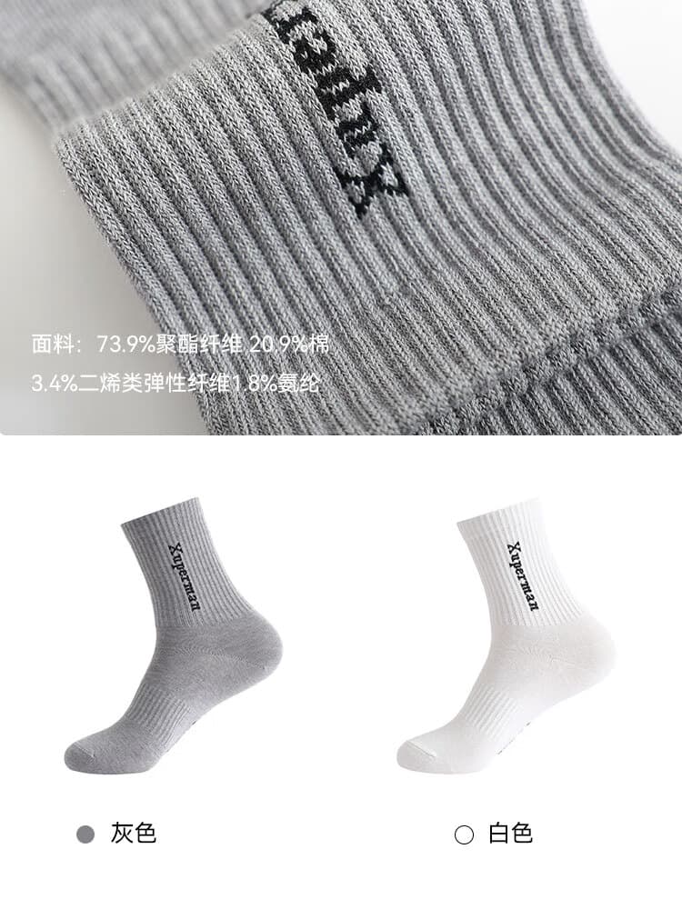 Xuperman 乒乓球袜 字母纯色吸汗中筒袜 休闲透气跑步运动袜 四色可选 经典logo提花