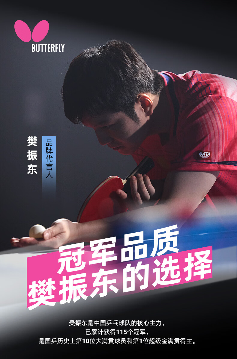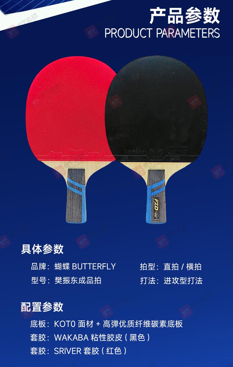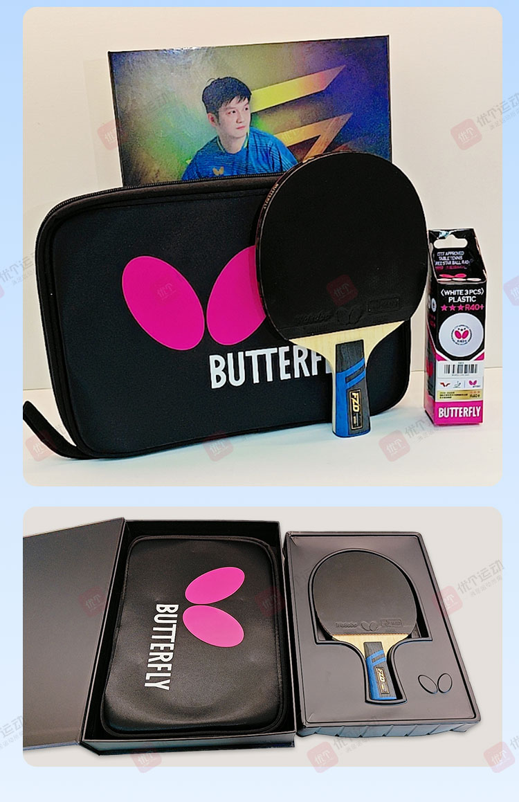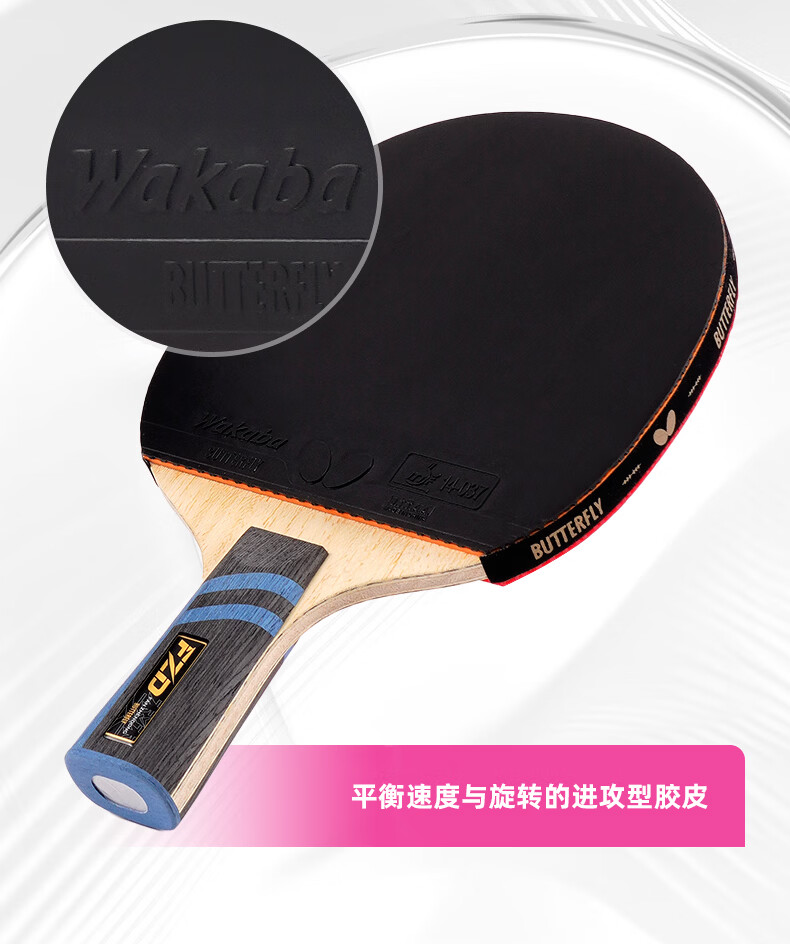 BUTTERFLY蝴蝶 樊振东礼品拍 高弹优质碳素纤维底板 正手黑色WAKABA粘性反胶 反手红色SRIVER