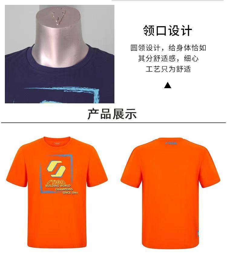 STIGA斯帝卡 CA-93162 棉氨 圆领速干短袖T恤 运动短袖 比赛运动服 藏蓝