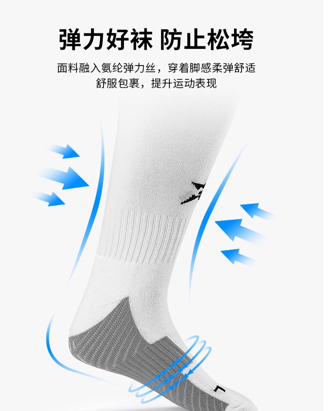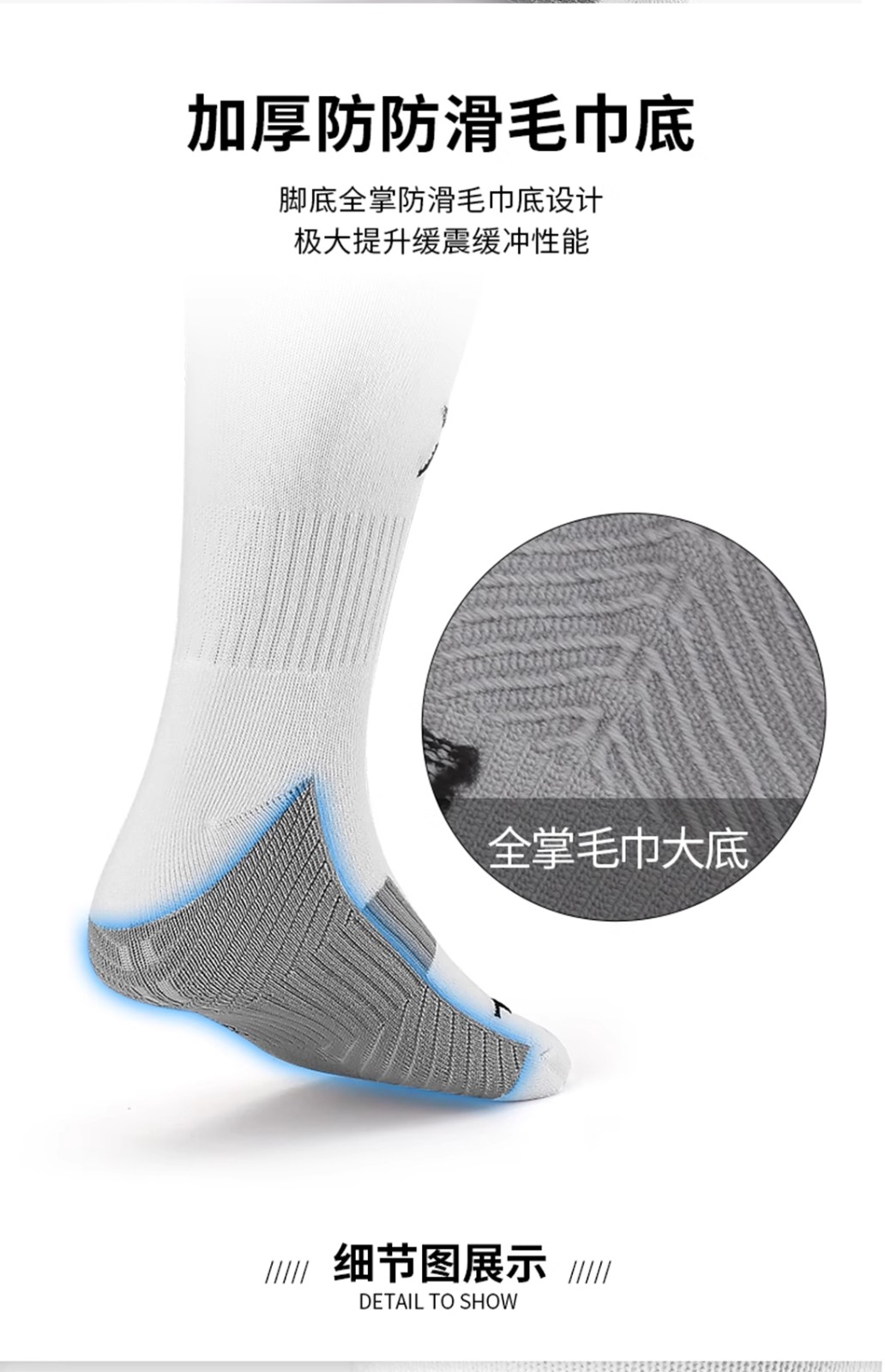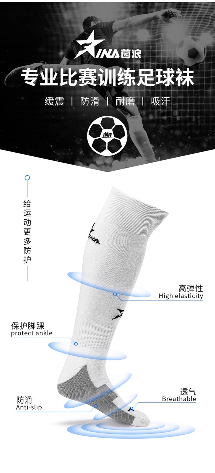 茵浪足球袜男长筒袜 过膝硅胶毛巾底 透气比赛长袜训练防滑球袜 IN1286白色 舒适透气 防滑耐磨