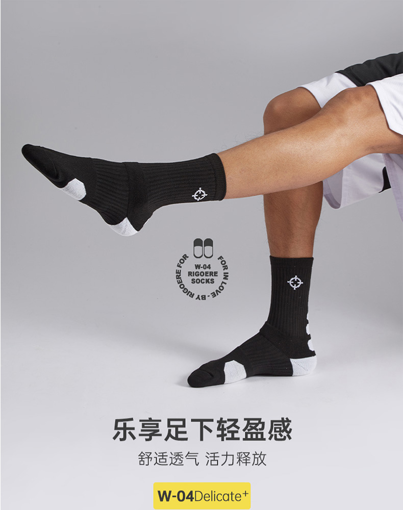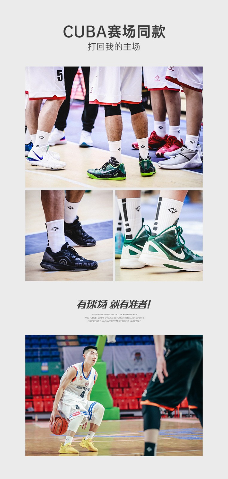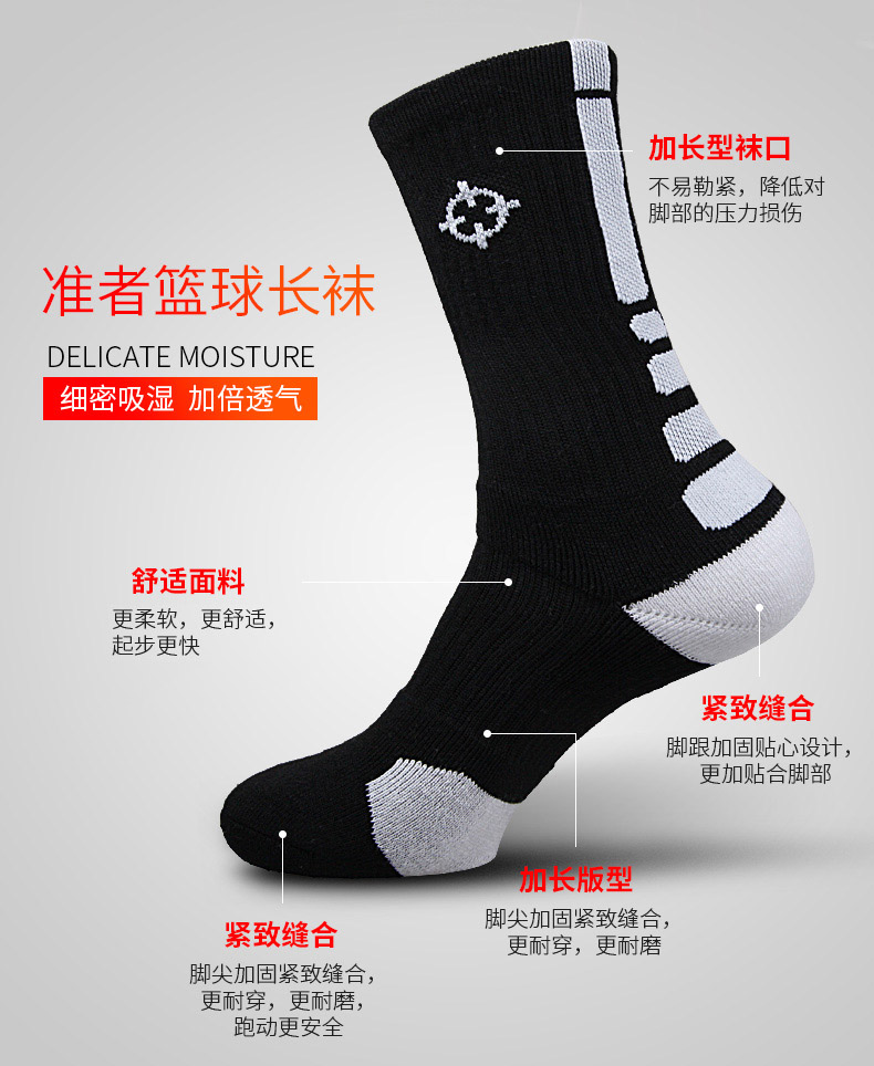 准者 男子篮球袜 CUBA赛场同款篮球袜 W-04-4白灰 包裹性强 毛巾底