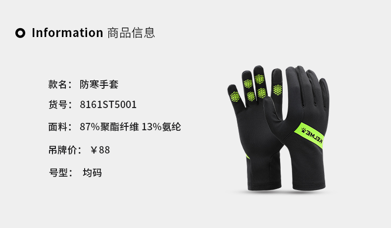 KELME卡尔美 足球防寒手套 冬天骑行手套 8161ST5001 多色可选 防滑保暖 无畏严寒